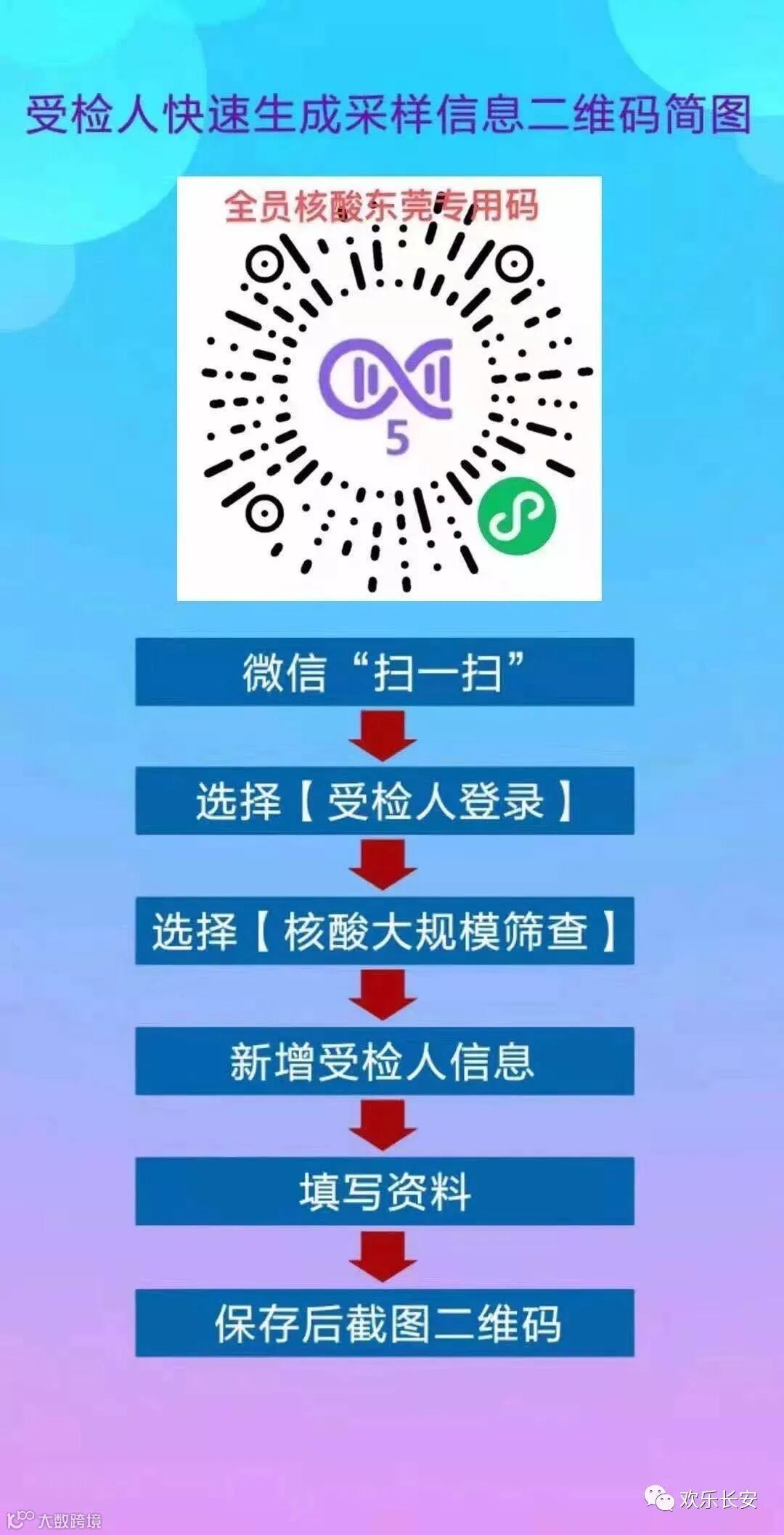 1.请各位市民提前在微信搜索“粤核酸”小程序录入个人信息,老人、小孩等无智能手机的人群可由家人代为登记,生成二维码后截图保存。