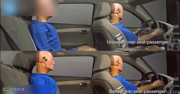 后排没系安全带的乘客猛烈撞击前排座椅,