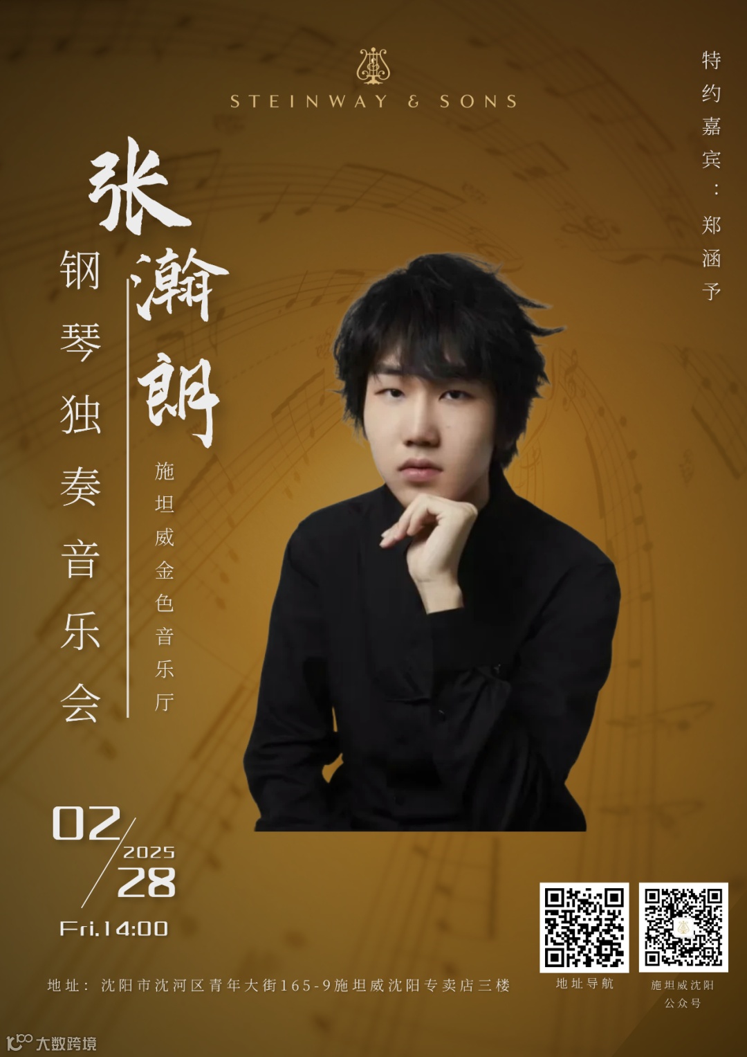 张瀚朗,沈阳音乐学院附中高二年级钢琴专业学生。5岁学习钢琴,2020年考入沈阳音乐学院附中,师从于沈阳音乐学院附中键盘学科主任李晓军老师。2023-2024学年附中国家奖学金获得者。