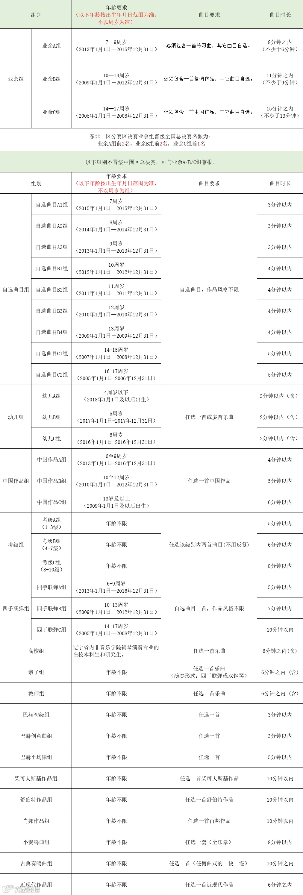 分赛区决赛业余组比赛日期: