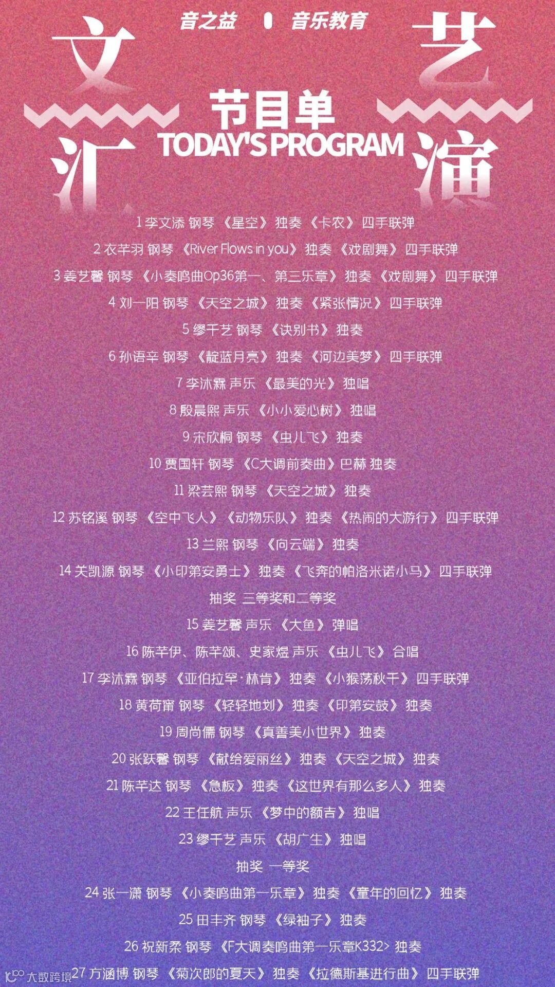 拥有20多年教学经验,不但让学员在正确的指导下科学、系统、规范地学习钢琴,同时不断挖掘学员的音乐天赋、培养浓厚兴趣、激发学习潜力。所教学员,专业钢琴考级中通过率高达100%,优秀通过达到98%,并在省市级以及全国钢琴比赛中取得了骄人成绩。