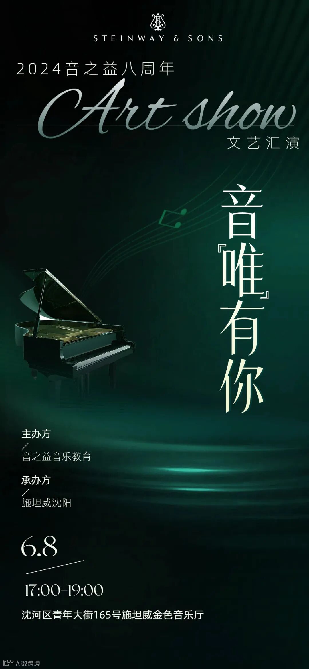 地址:施坦威金色音乐厅(沈阳市沈河区青年大街165-9号金廊广场A座)