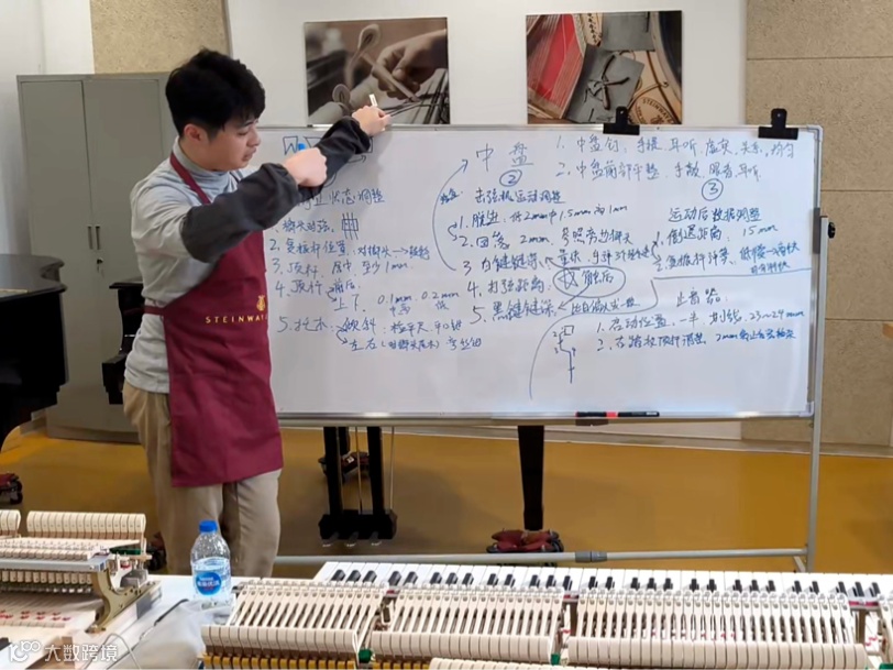 为了巩固和检查同学们的学习成果,在培训的最后一天,老师特别要求同时攻读钢琴演奏和钢琴调律双专业的蔡双千同学对过去两周所学的内容和做过的工作进行了总结和回顾。
