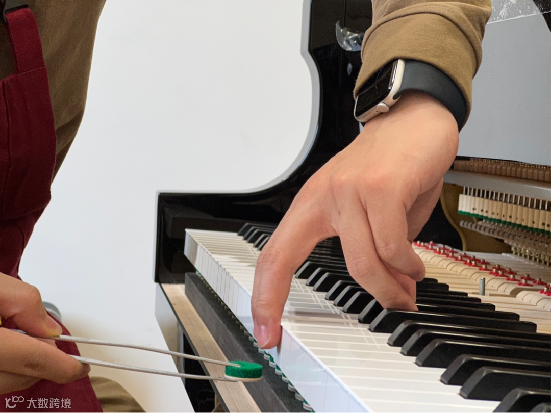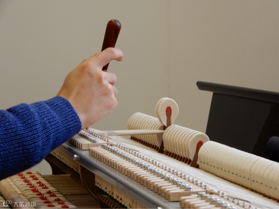 本次培训的主要内容为三角钢琴击弦机系统调整与止音器系统调整。击弦机作为一台钢琴的“心脏”,对于钢琴的触感和音色都有着巨大的影响,而高标准的整调,也是让一台钢琴达到最佳状态不可或缺的工作。在老师的引导下,同学们首先对钢琴进行了试奏。老师说道:“每一位优秀技师都应当有对钢琴敏锐且细致的感受力,如果你们想成为顶尖的技师,在接触到一台琴时首先要花时间去演奏和感受它,然后再判断与确定需要进行的工作。在接下来的两周里,我们每做完一道工序都需要试奏,希望你们能够更深刻地感受并理解钢琴技师的工作是如何一点点让钢琴的演奏感觉产生变化的。”