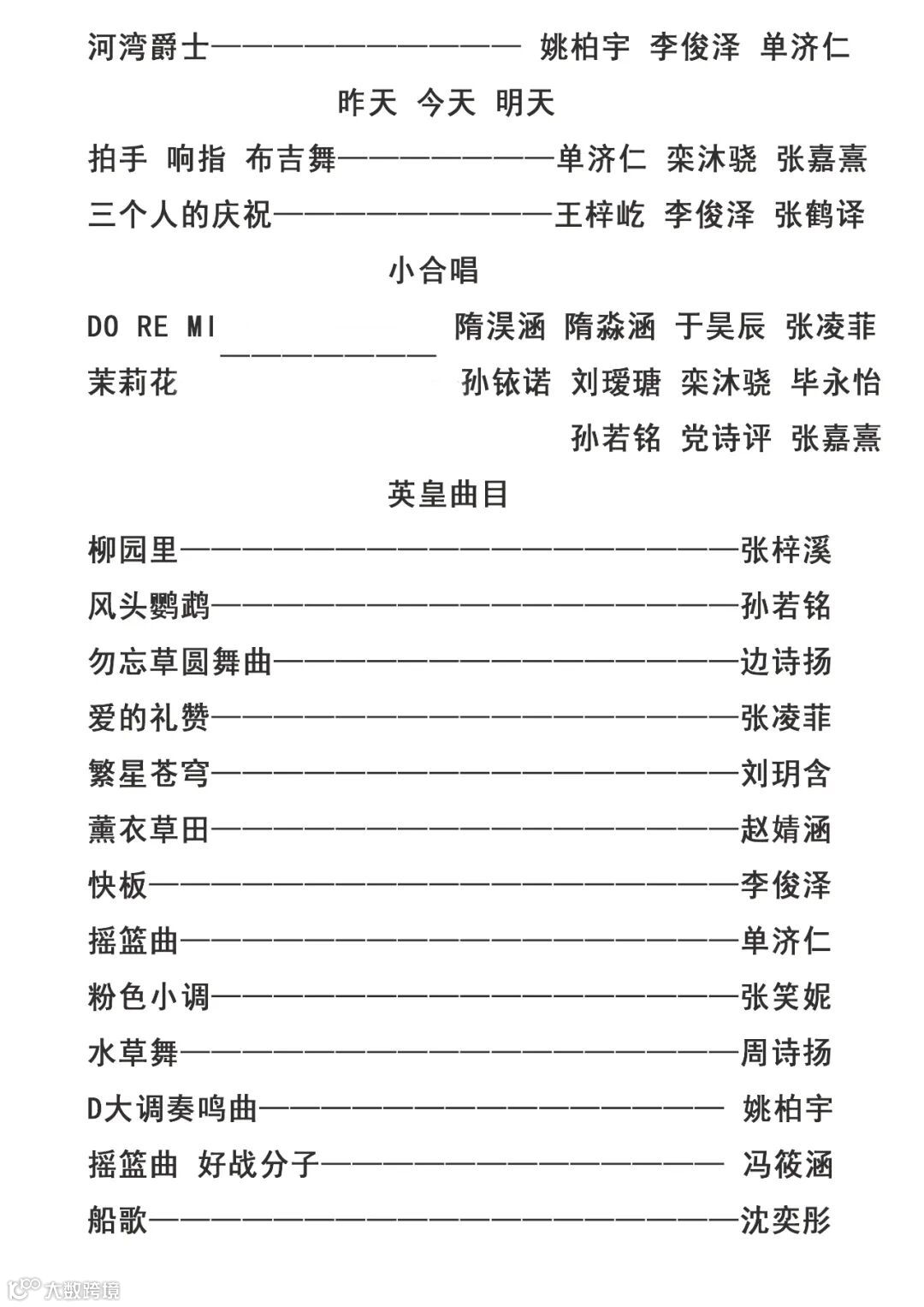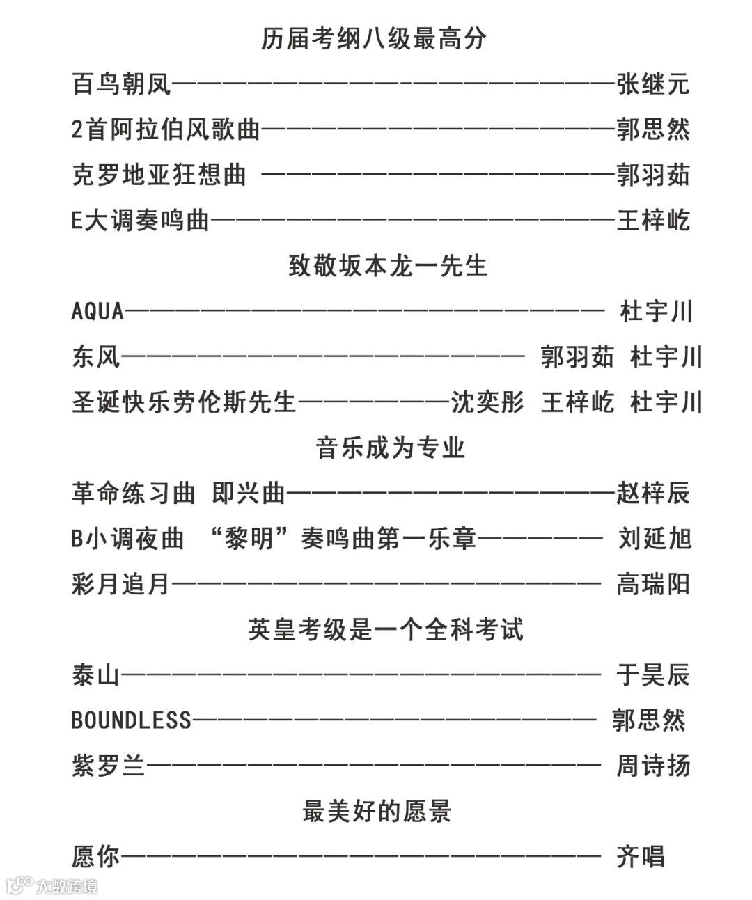 所教授的学生全部通过英皇考级、中国音乐学员考级。