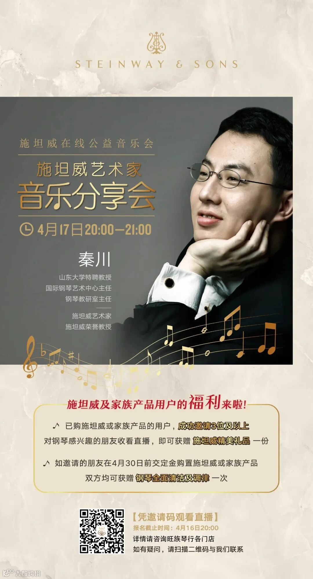 本次直播凭邀请码观看,详情咨询施坦威钢琴(沈阳)展示中心