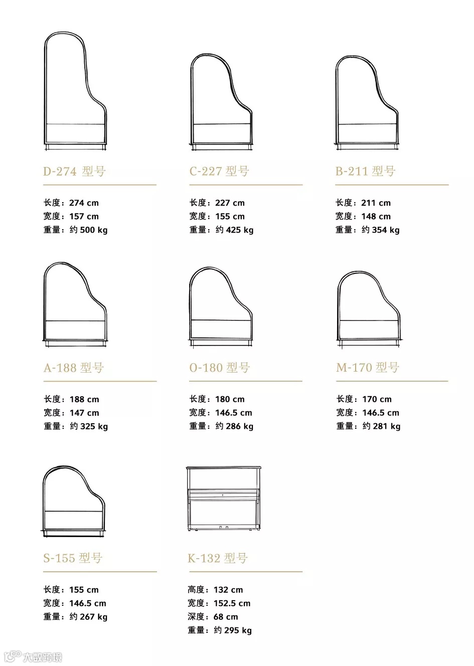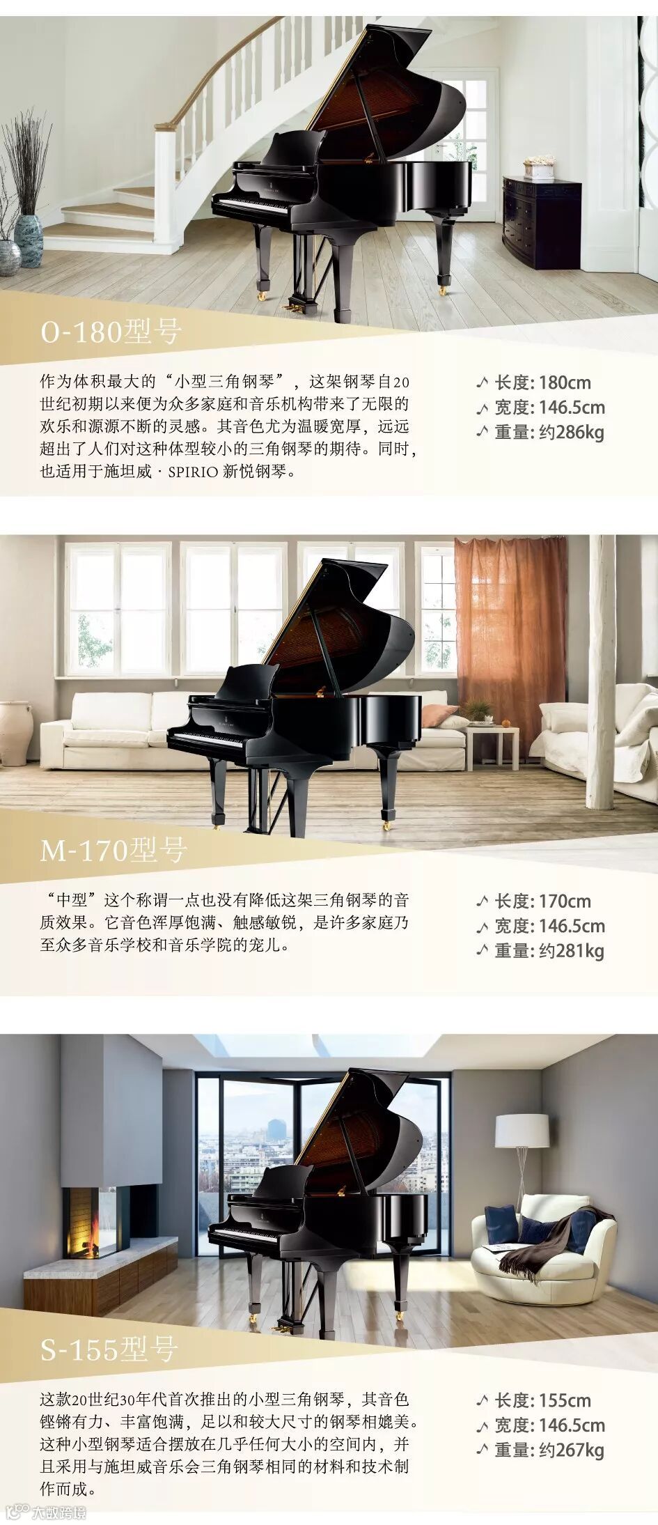 施坦威同样提供多种产品型号满足不同层次消费需求: