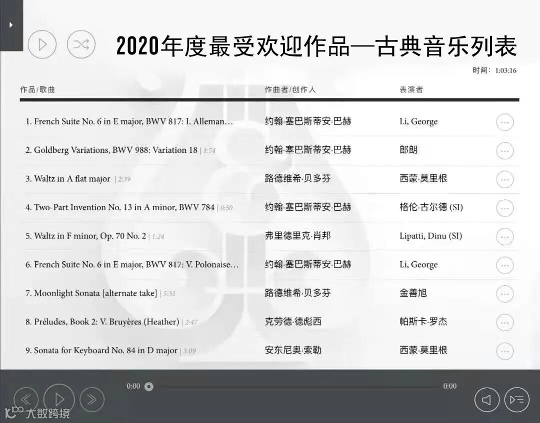 作为世界上最好的高解析度自动演奏钢琴,SPIRIO新悦钢琴本月总结了2020年最受新悦钢琴收藏者喜爱的作品,分为流行音乐、古典乐和爵士乐与音乐剧播放列表。施坦威·SPIRIO新悦钢琴的拥有者,现在就可以在家中的客厅,欣赏2020年最受欢迎的音乐作品。乐点亮生活