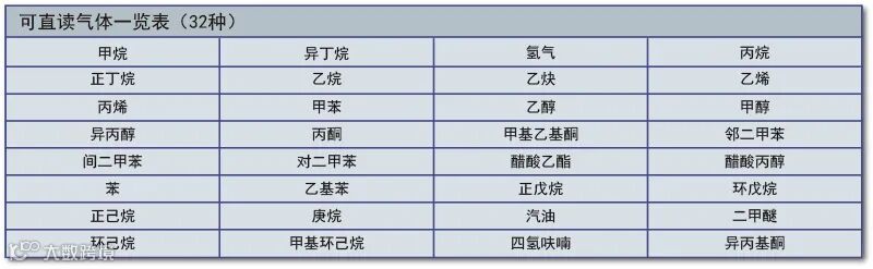 检测可燃气(%LEL)的机型,除检测对象外还可切换读取32种气体。