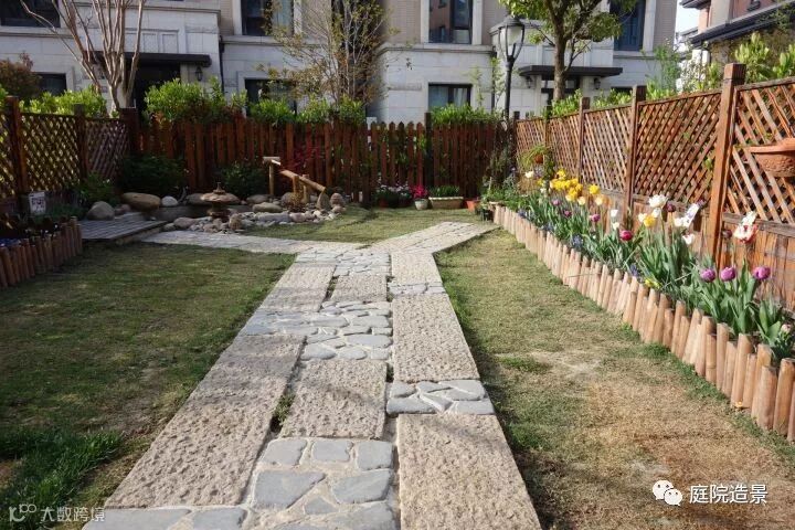 小院的中央铺了石板路并向两边延伸,石板路的周围铺上了主人分两次从九亭驮回来的马尼拉皮草。院子的两侧各围了花圃,种上了鲜花,在春暖花开之际,让这不大的小院格外美艳。我本以为花花草草已足够丰富这邻家小院,却不曾想到主人用心的又在这院里添了块小鱼池,鱼池的岸边铺满了鹅卵石,石中央又特地立了一盏荷花雪见灯作为点缀,院子里的美景瞬间多了份生动。
