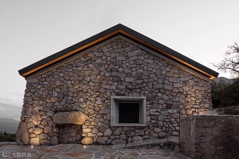 建筑借鉴了当地村庄的传统建筑形式,新修的庭院直接与公路相连。建筑的一个特色之处在于朝向北面的传统石砌立面,显得极具辨识度,朝南的石灰立面则呈现出简洁而现代的观感。