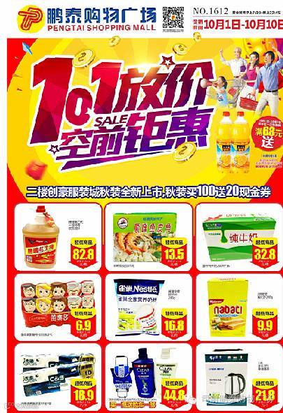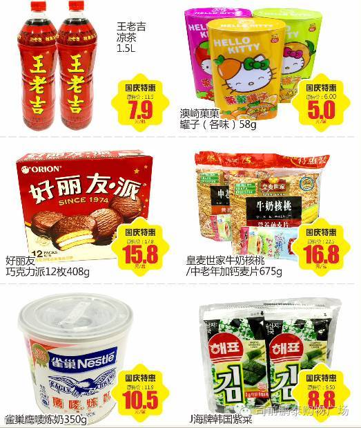 导读:10月1号—10月3号超市区满68元送1.8L果粒橙1瓶(粮油大米除外,凭小票到服务台领取。数量有限,送完即止)
