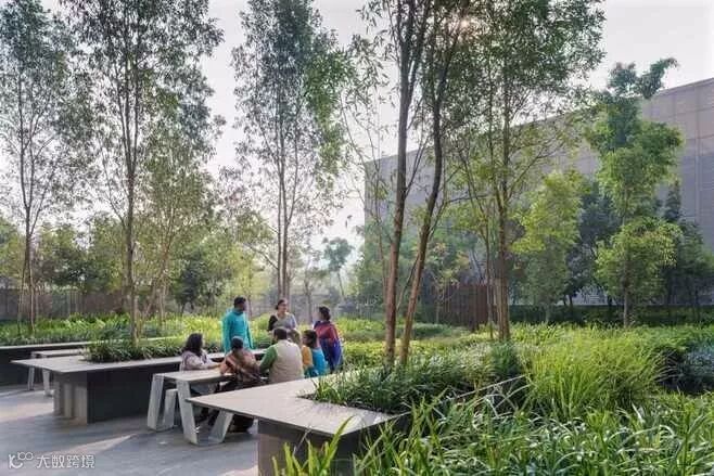 低影响、低成本、低维护的三低景观在花园中无处不体现,形成技艺兼备的雨水系统:形态遇到生态,可观可玩可用的生态空间。