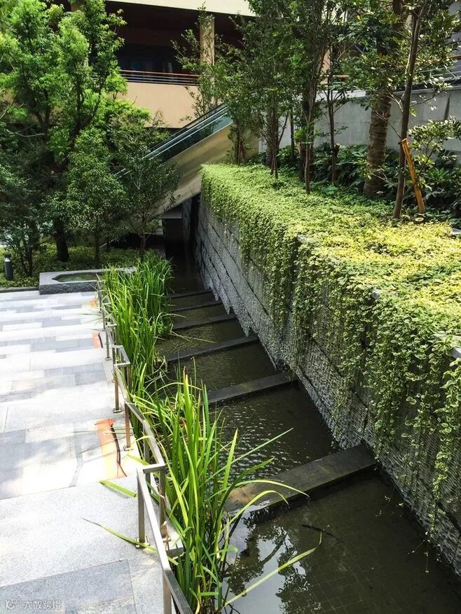 通常是在地理位置相对比较低的环境,经过纯天然的土壤层、或加入人工土和植物种植,从而消化该区域里聚集的流水