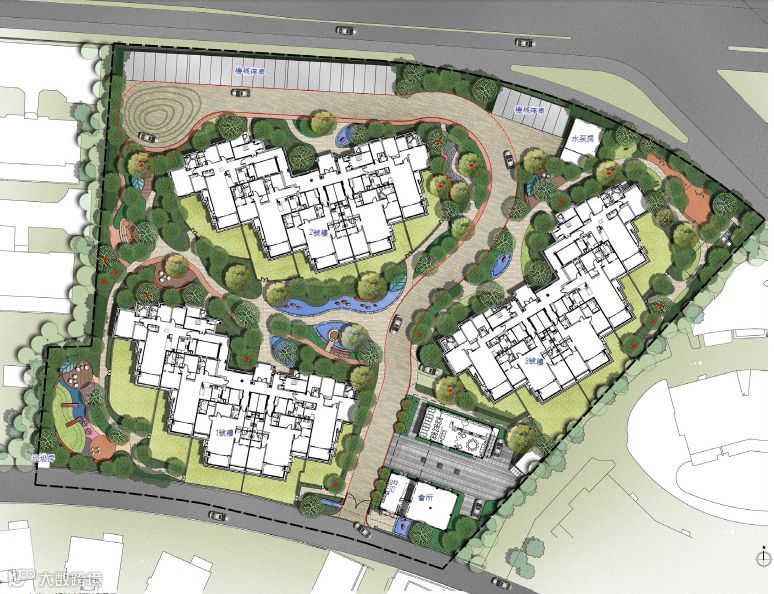 为搭配建筑的调性,景观设计应与建筑风格协调,采用柔和暖色为主色调,并通过材质表现,营造温馨舒适的氛围。