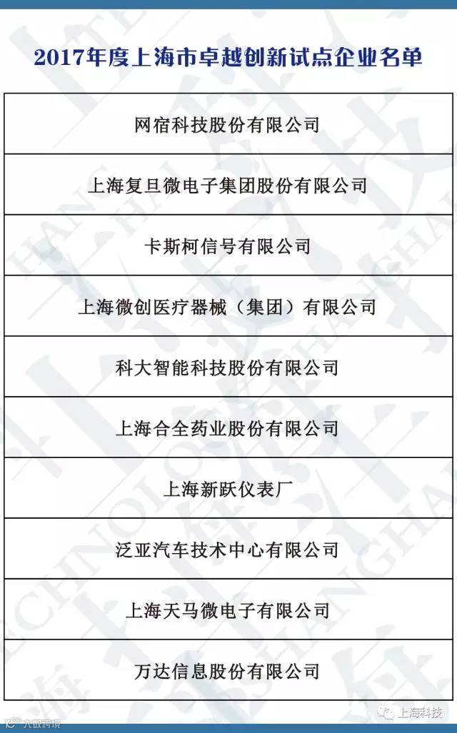 根据《关于试点开展上海市2017年度“卓越创新企业培育工程”申报工作的通知》(沪科合〔2017〕8号)要求,经公开自主申报、专家评审、公示,近日,上海复旦微电子集团股份有限公司等10家企业列入2017年度上海市卓越创新试点企业名单。