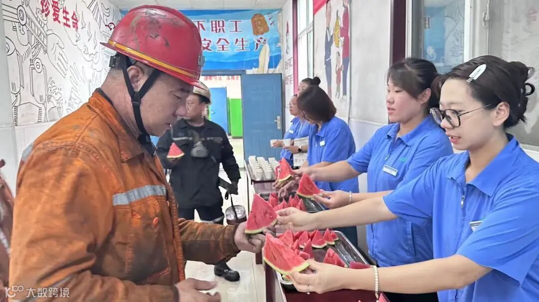 活动中,工作人员将精心准备的西瓜、绿豆汤、解暑饮品等清凉物资搬运至入井通道,有序分发给即将下井和刚升井的职工,确保大家第一时间感受到夏日里的清凉与关怀。与此同时,工作人员还将清凉物资逐一送至门岗、火药库、储运科、机修队、运输队等地面高温岗位,每到一处都细致叮嘱职工做好防暑措施,注意劳逸结合,时刻将安全放在首位。