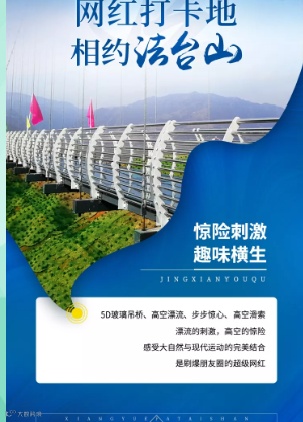 在一场旅行中,刺激、呐喊、尖叫、心旷神怡皆有是你感受过的吗?你体验过动感快乐的高空漂流吗?你在天然氧吧里漫步行走过吗?你敢走百米高空玻璃吊桥吗?你玩过刺激的七彩滑道吗?你体验过神秘喊泉吗?你敢玩高空秋千吗?是不是听着都已经心动了呢?法台山景区,体验游戏世界,满足你所有的快乐。
