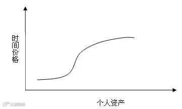 如上图所示,人们时间的价格和其个人拥有的资产大致呈这么一个曲线。