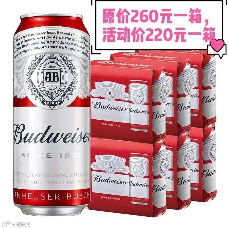 百威啤酒原价260元一箱,活动价220元一箱!
