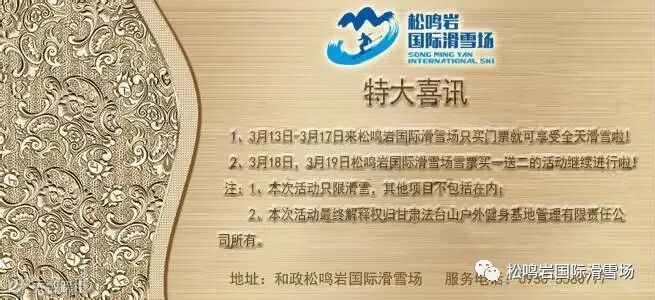 喜讯二:3月18日,3月19日松鸣岩国际滑雪场雪票买一送二的活动继续进行啦!