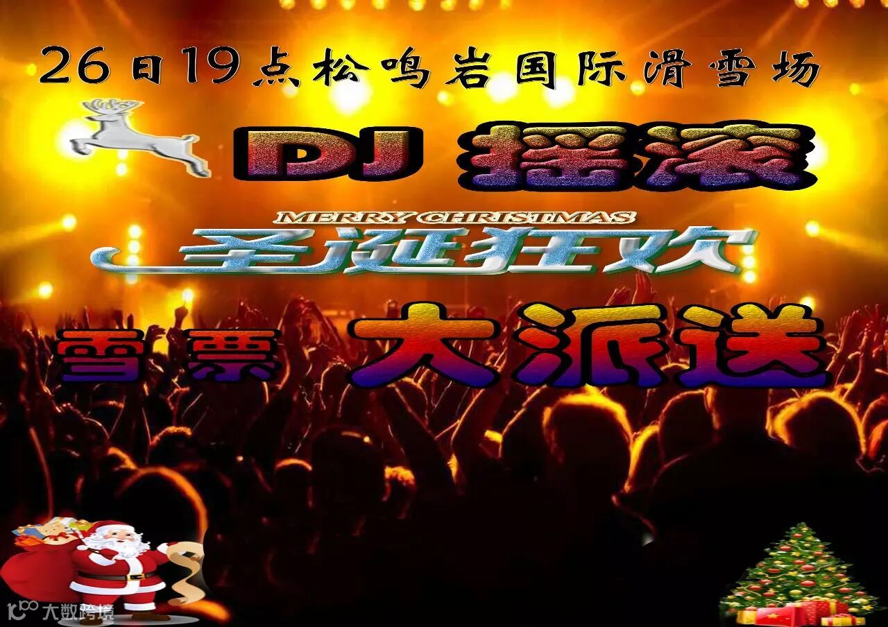 12月26日晚七点松鸣岩国际滑雪场将迎来一场无比疯狂的盛大晚会-----“圣诞DJ 狂欢夜"!这个别样的夜晚,有帅哥、美女、美酒、美食、美景陪你一起狂欢,给你一份别样的圣诞大礼!赶快带着您的家人和朋友一起来high吧!疯狂起来吧!!!咚次哒次咚次哒次咚次哒次、、、、、、