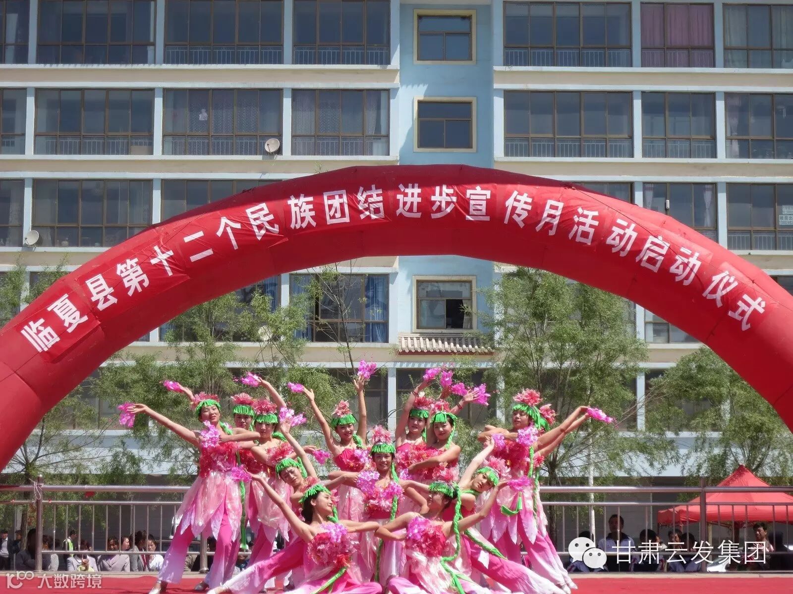 5月11日上午,临夏县在土桥镇万顷塬文化广场隆重举行了第十二个民族团结进步活动宣传月活动启动仪式,甘肃云发宁河韵艺术有限责任公司应邀演出了”同谱民族团结曲 共铸社会和谐魂“为主题的大型文艺节目,约有10000多人参加仪式并观看了演出,本次演出受到了临夏县社会各界和各族群众的一致好评和赞扬。
