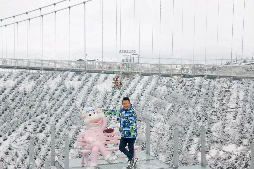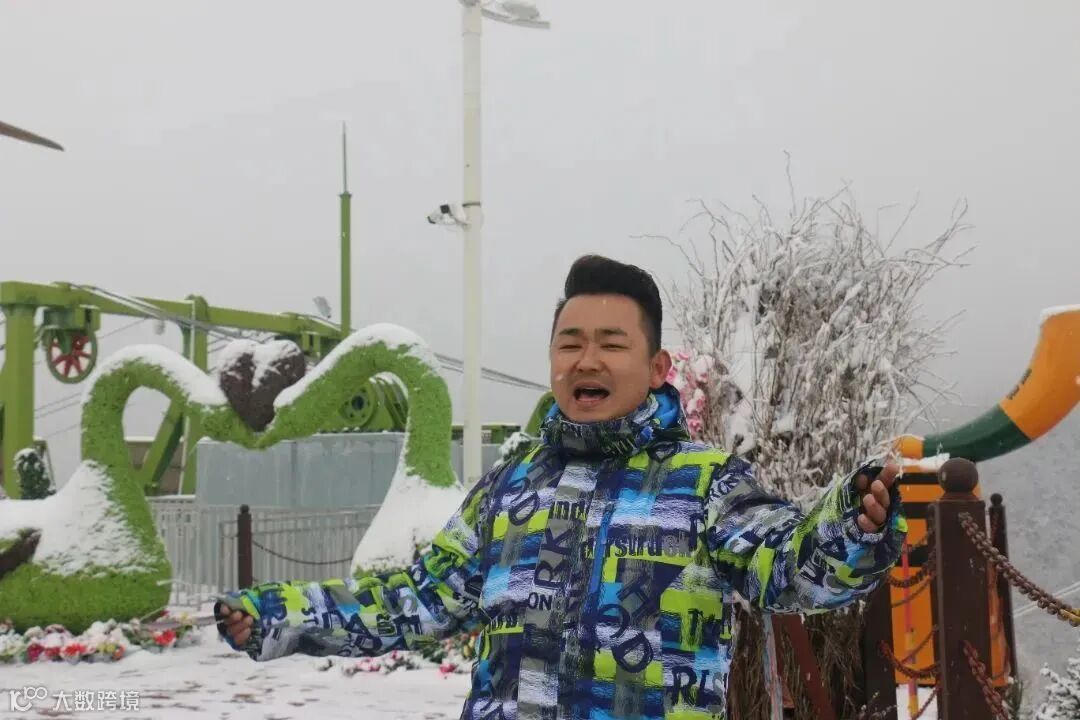 室内热闹非凡,室外则白雪飘飘,趁着演出间隙,歌手马全到各景点打卡拍照,在白雪下漫着花儿,别说还真有另一番别样的情趣,也给法台山增加了不一样的魅力。