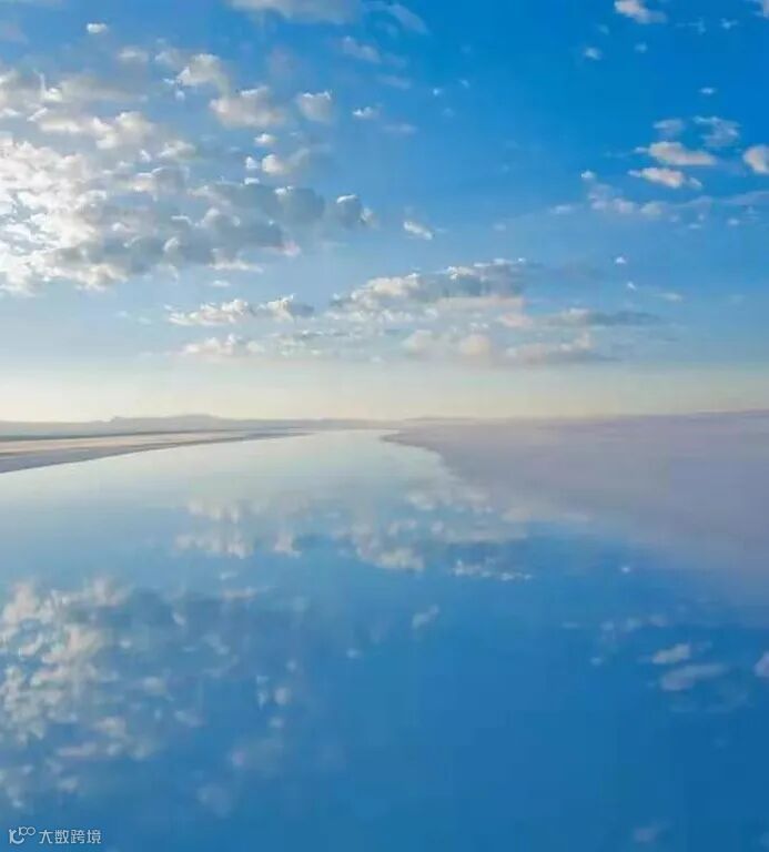 这里,时间并没有静止,但这时,时间好像真的静止了,与其说是“天空之镜”,不如说是一场幻镜,天地一线,在现实世界中早已很难找到如此纯净的地方,白得是如此的彻底,抬起头,头顶有着一片蓝天,低下头,脚下仍是一片蓝天,已分不清是天空倒影在镜面中,还是镜面融化在蓝天里。这样的景色应该就是天堂了,置身其间,恍若仙境,仿佛这就是世界的尽头。