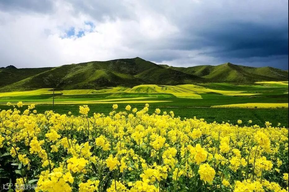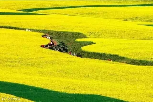 早餐后,沐浴着扁都口清晨灿烂的阳光,呼吸着异常新鲜的空气,挥手告别这一片金灿灿的花海。坐车前往张掖动车站,一路繁花相送。这里远山叠翠,绿绿的青稞相伴下的大片大片的油菜花一直延伸到了山脚下。