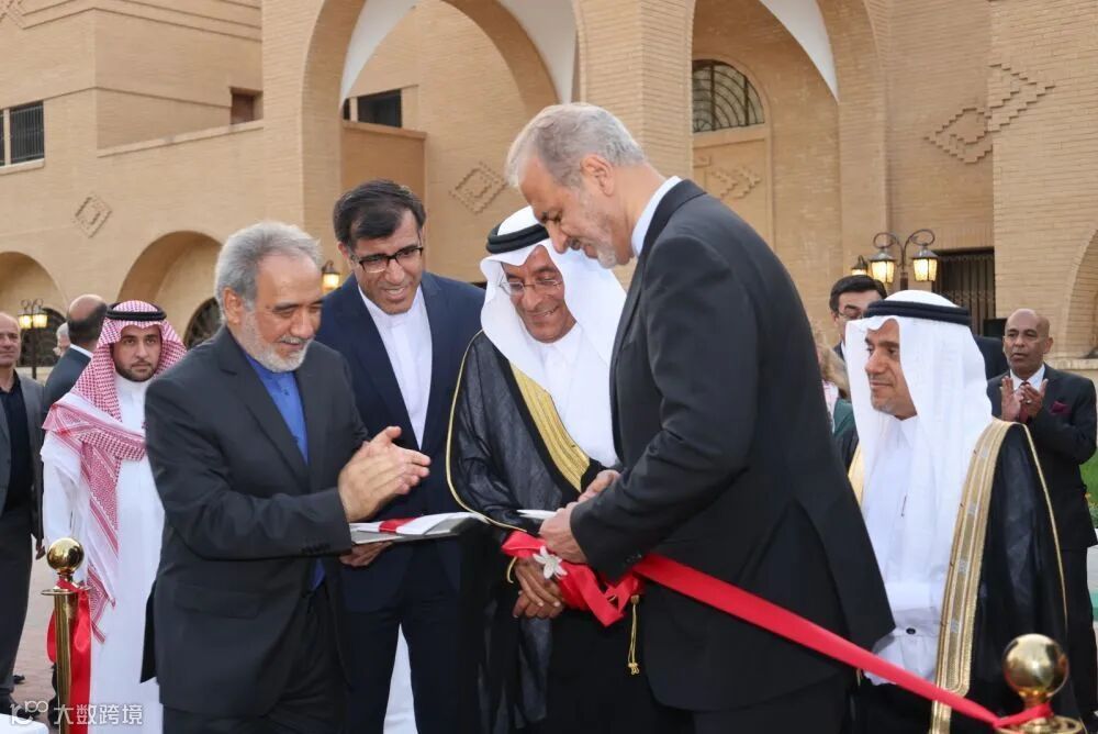 2023年6月6日,在沙特阿拉伯利雅得,伊朗副外长比格德利(前右一)、沙特副外交大臣优素福(前右二)等出席伊朗驻沙特阿拉伯大使馆复馆仪式。新华社记者 王海洲 摄