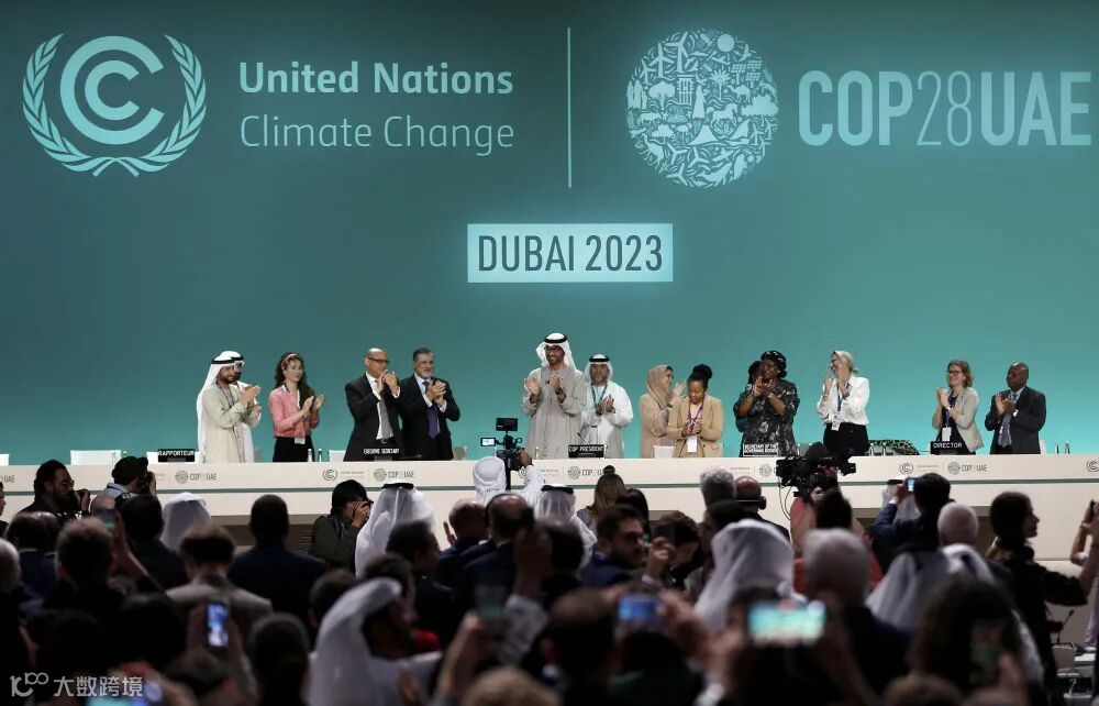 2023年12月13日,在阿联酋迪拜举行的《联合国气候变化框架公约》第二十八次缔约方大会在“加时”一天后闭幕。这是大会主席苏尔坦·贾比尔宣布达成“阿联酋共识”后,参会人员起立鼓掌。新华社记者 王东震 摄