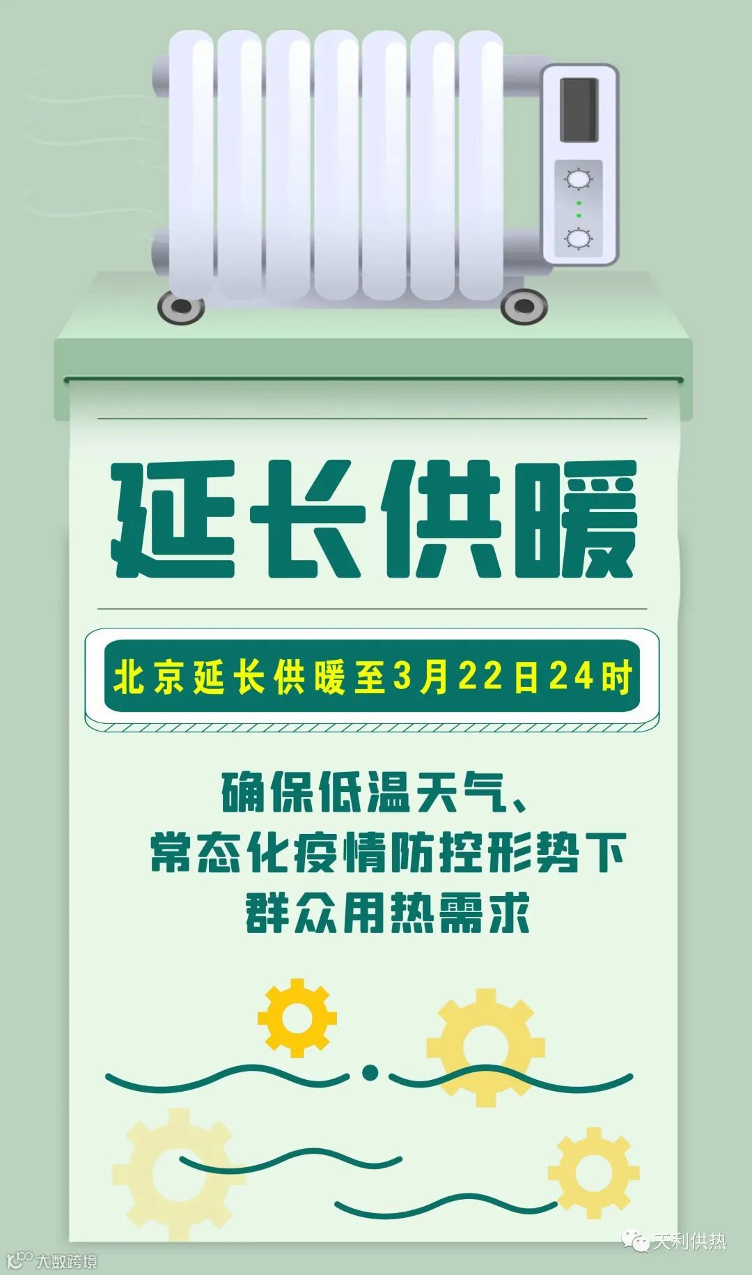 为应对此次降温,市城市管理委员会同市发改委、市气象局等部门研究,已达到延长供暖规定条件。2021年-2022年采暖季居民供暖结束时间从3月15日24时延长至3月22日24时,共延长7天。