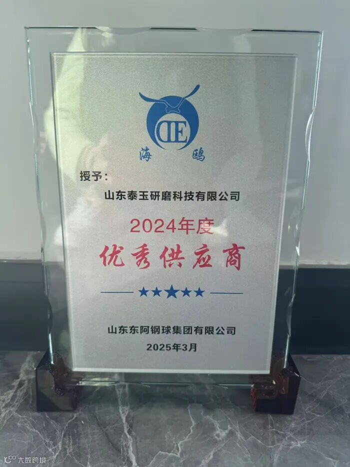 在近日举行的东阿钢球集团2024年度供应商大会上,山东泰玉研磨凭借持续30余年的卓越配套服务,荣膺”年度优秀供应商”称号。公司总经理苏耐峰作为供应商代表,在此行业盛会上发表《以精工致匠心,以协同创共赢》主题演讲。