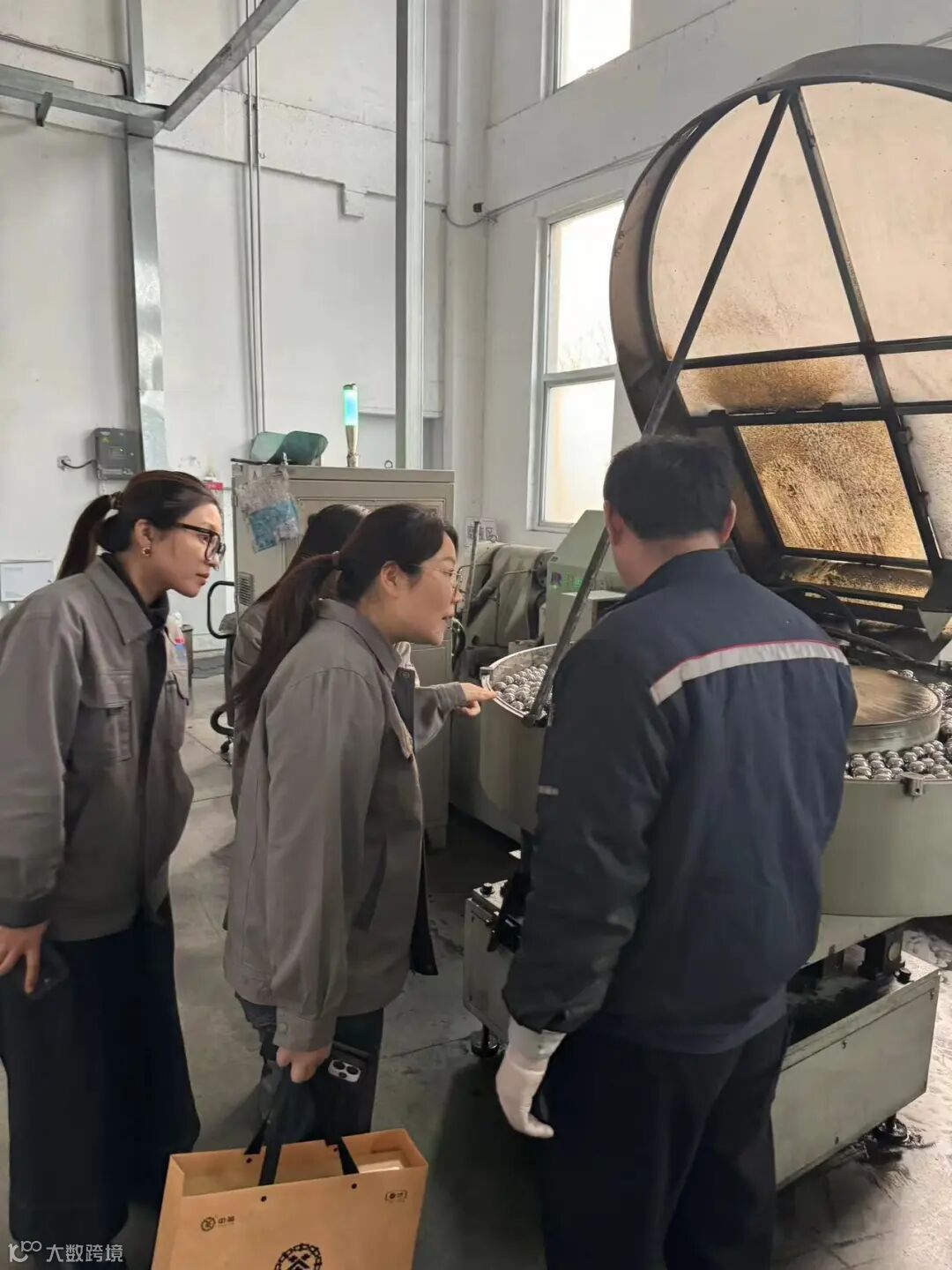 在环亚钢球生产车间,泰广奕团队一行实地参观了钢球生产的完整工艺流程,从原材料处理到清洗包装,对每一道工序有了直观而深刻的认识。环亚钢球杨总经理结合生产实际,详细介绍了各生产环节中对磨削工具(砂轮)的性能要求、关键质量指标以及常见的磨削难点与解决方案。他分享的宝贵实践经验,使泰广奕团队成员对自己的产品在客户实际应用中的表现有了更具体、更落地的理解。
