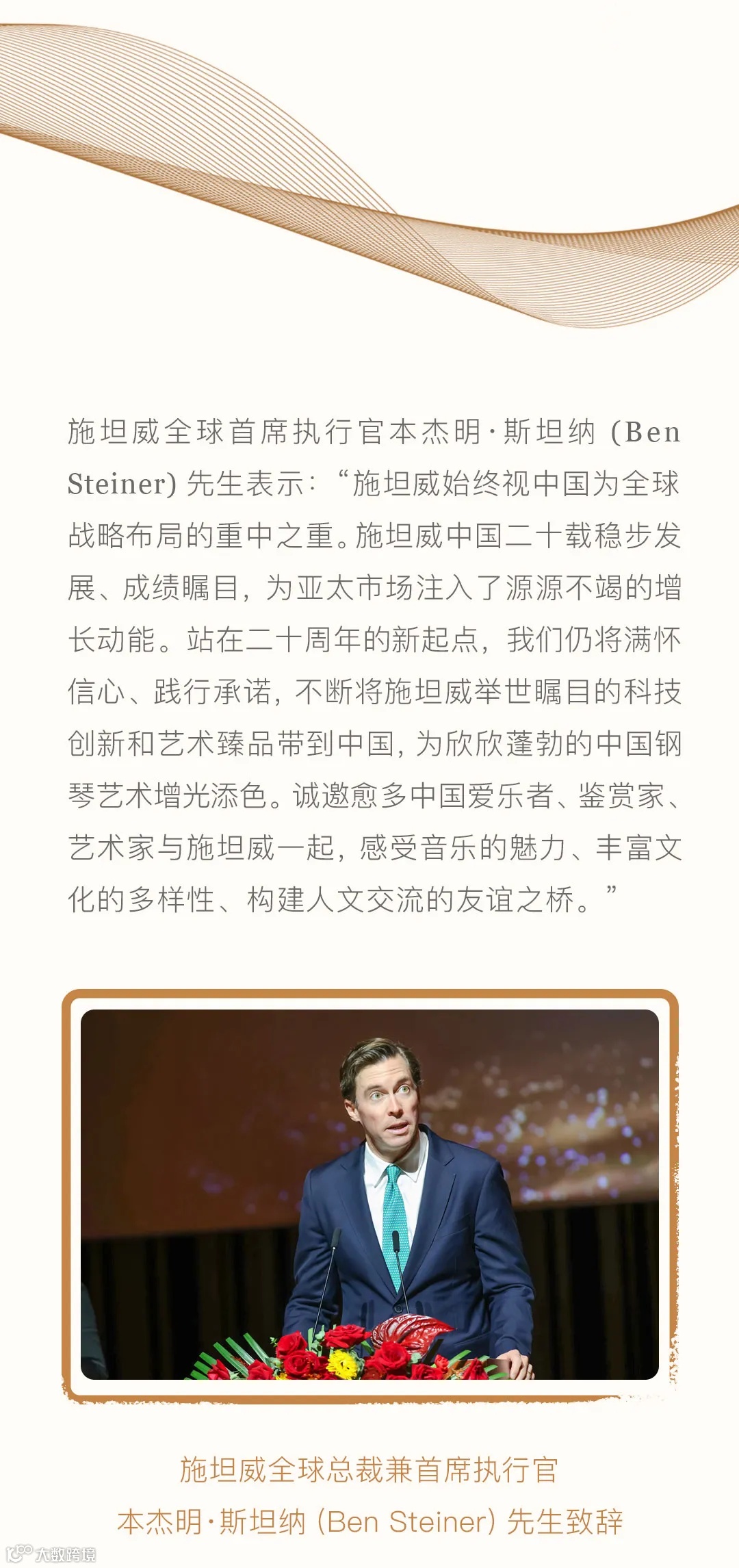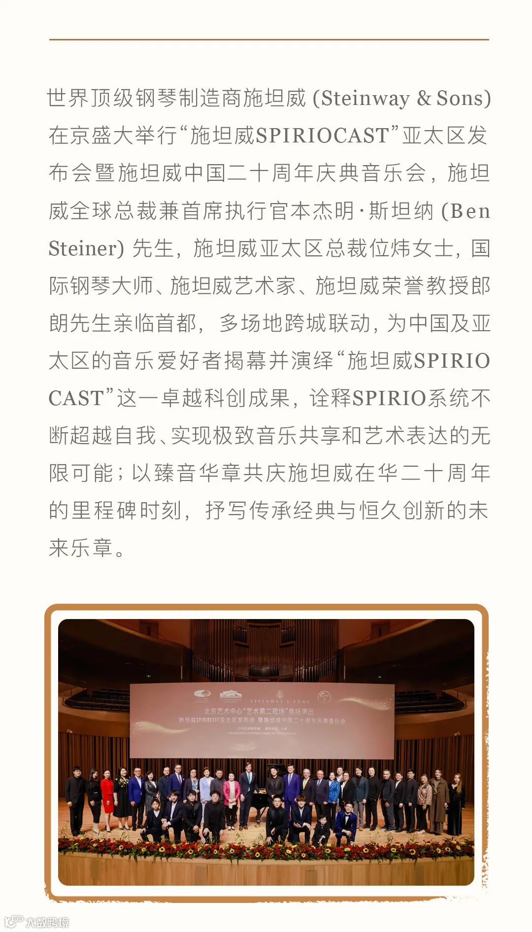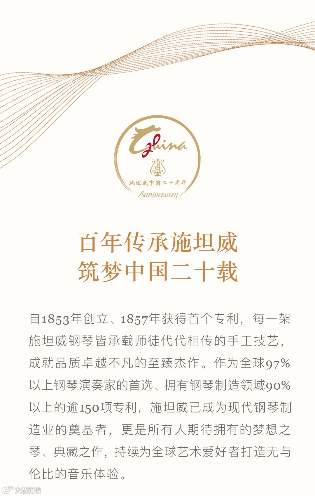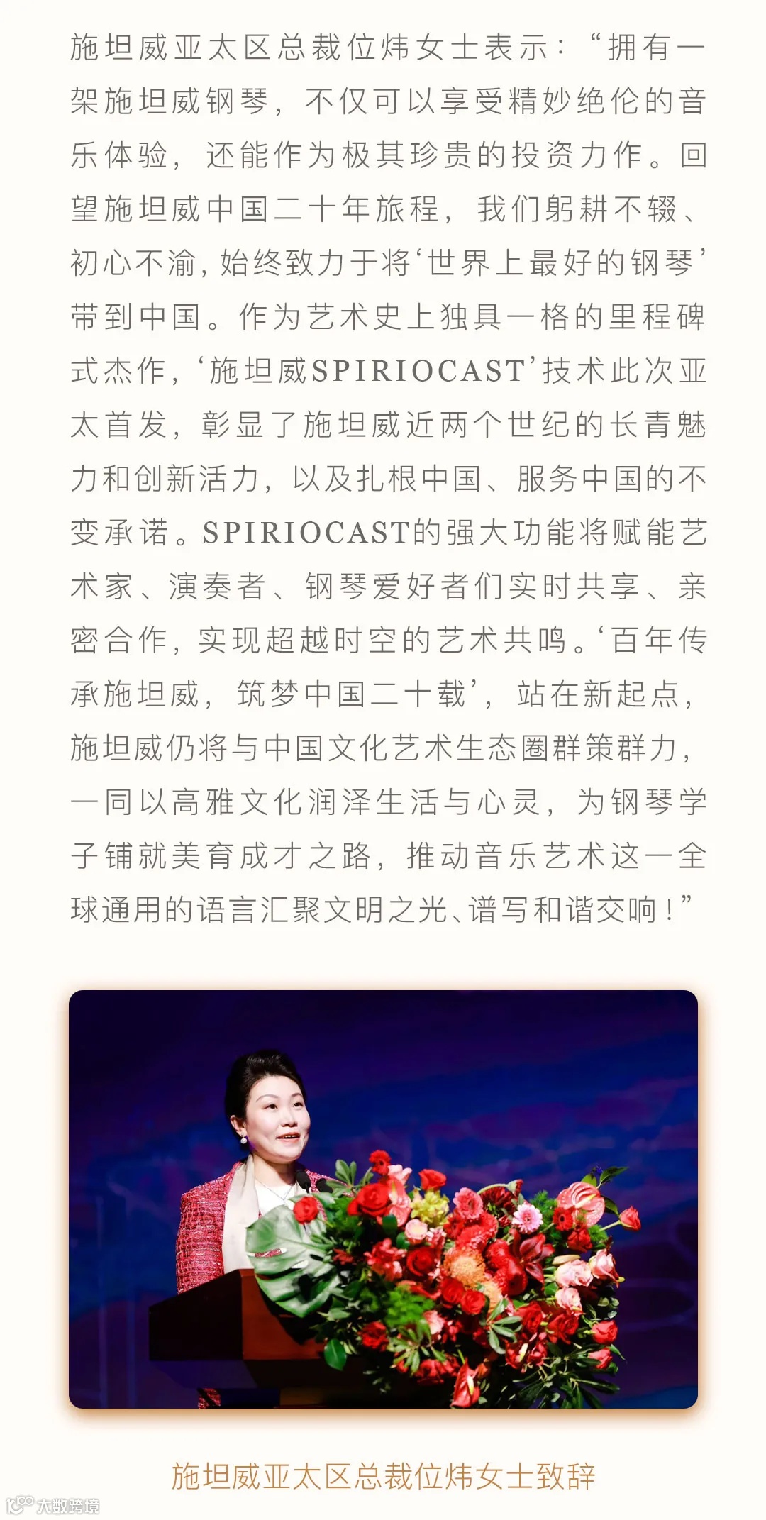 导读:百年传承施坦威筑梦中国二十载#施坦威艺术家 郎朗领衔#施坦威SPIRIOCAST 亚太区发布暨施坦威中国二十周年庆典音乐会新的起点 新的征程#施坦威钢琴 将持续书写传承经典与恒久创新的华彩乐章