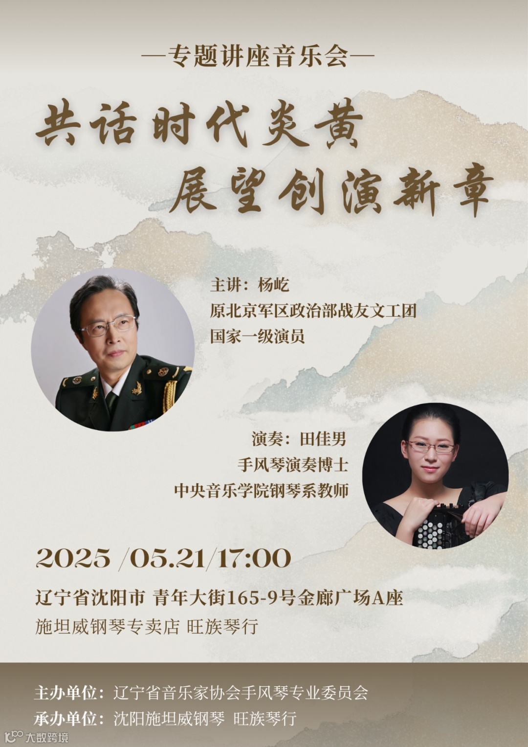 以《炎黄风情——24首中国民歌主题自由低音手风琴曲》中的曲目为主,通过演奏加讲解的形式,为音乐爱好者们呈现一场音乐盛宴。