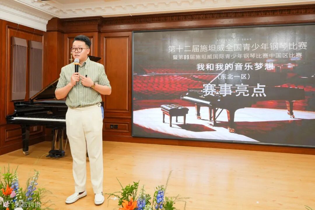 沈阳旺族琴行总经理刘敬先生致辞:作为东北一区的主办方,深知责任重大,我们将全力以赴,确保比赛的公平、公正、公开。同时,我们将为选手们提供最优质的比赛环境和最专业的赛事服务,让每一位参赛者都能在施坦威的舞台上尽情展现才华。