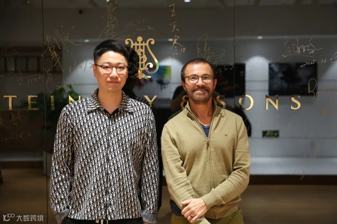 印芝博士在施坦威艺术家墙上签名,并与旺族琴行总经理刘敬先生合影留念。