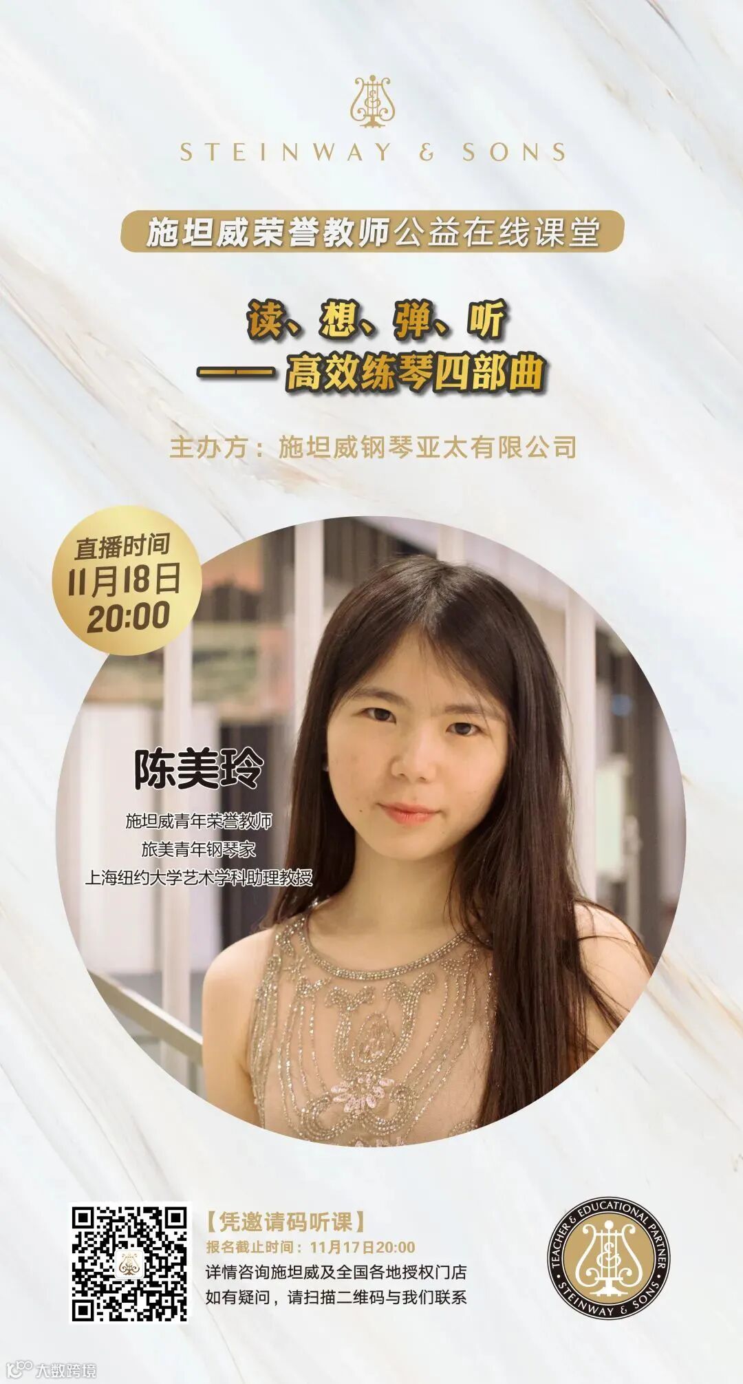 此次我们特邀施坦威青年荣誉教师陈美玲