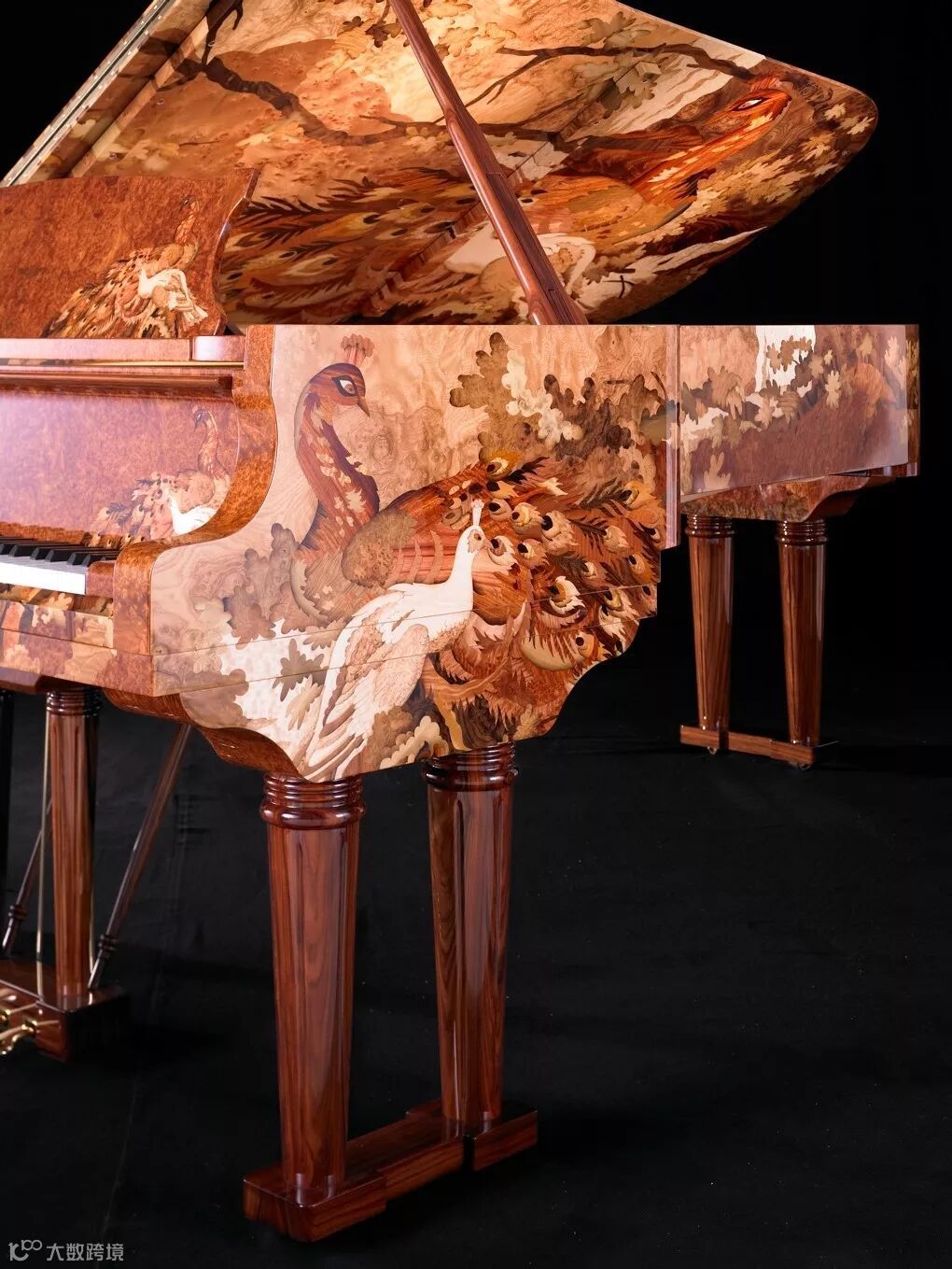 谈及钢琴与中国当代艺术的完美结合,施坦威艺术外壳钢琴“和谐之声”无疑是最杰出的代表作之一。她由痴迷于艺术品收藏的中国收藏家郭庆祥先生定制,以中国著名当代画大师石齐于1989年创作的中国画名作《孔雀》为蓝本,使用40余种不同珍稀木材历时四年全手工打造。