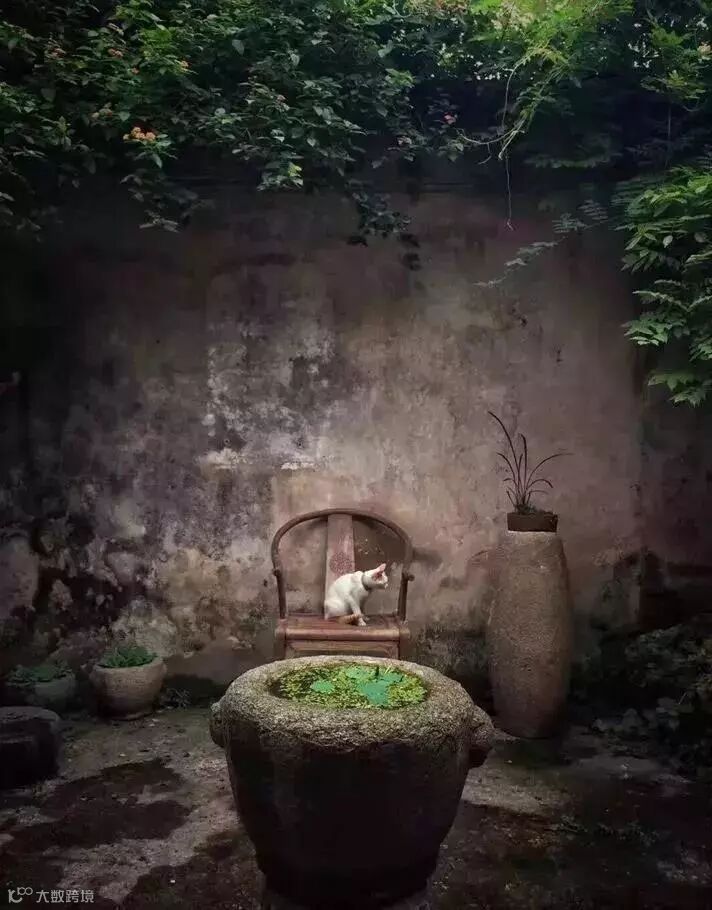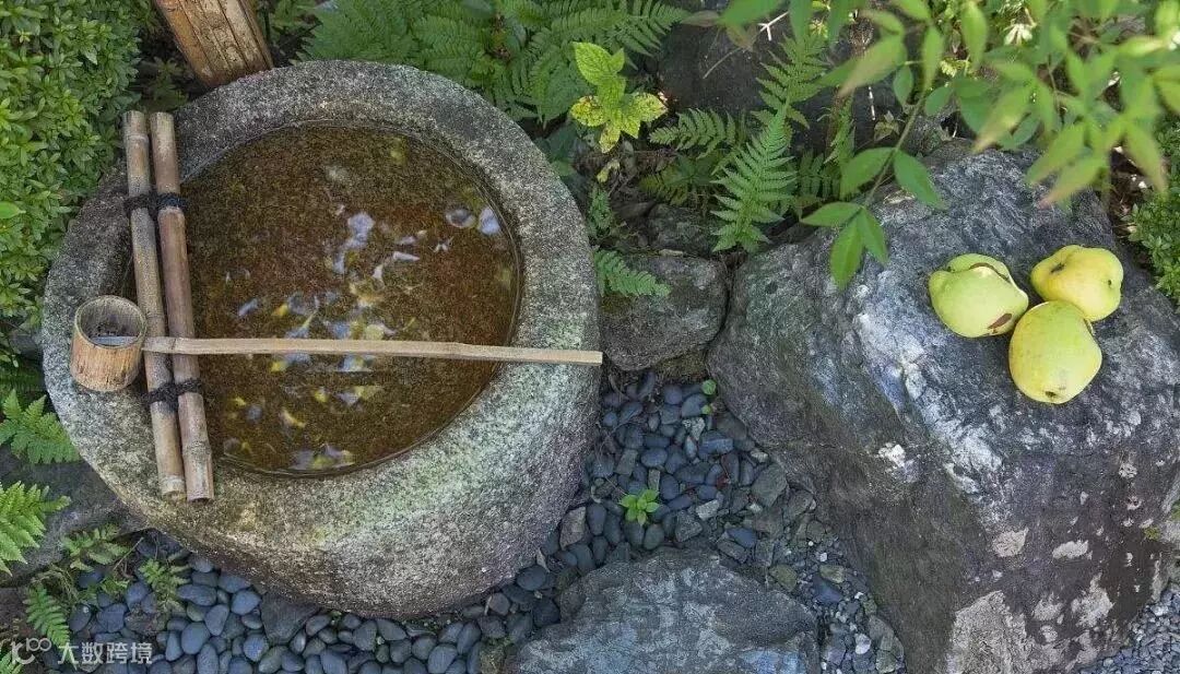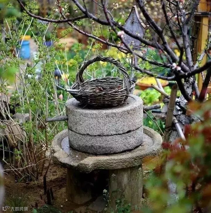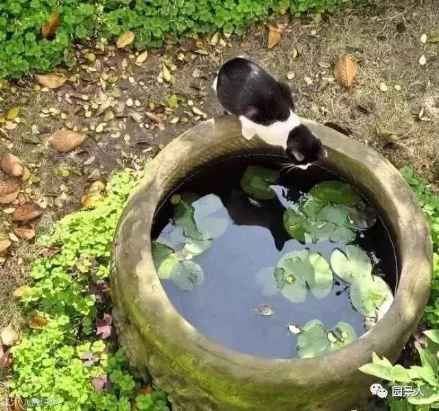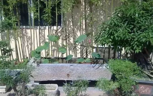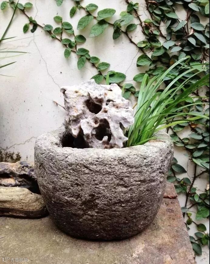 石缸养莲植蒲,石磨铺地做水景等等,