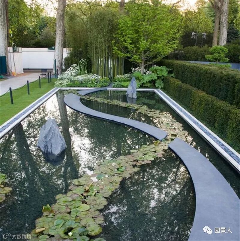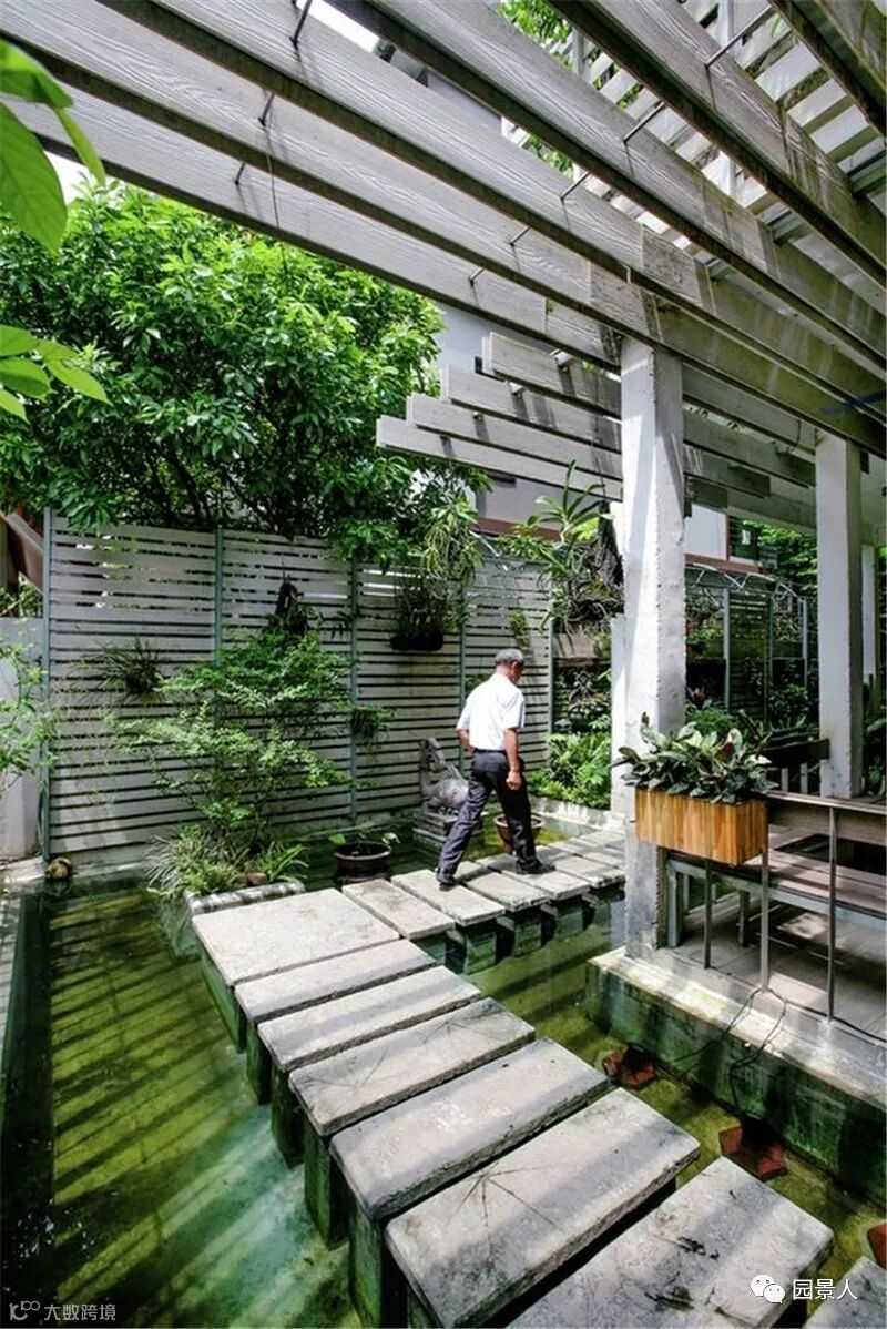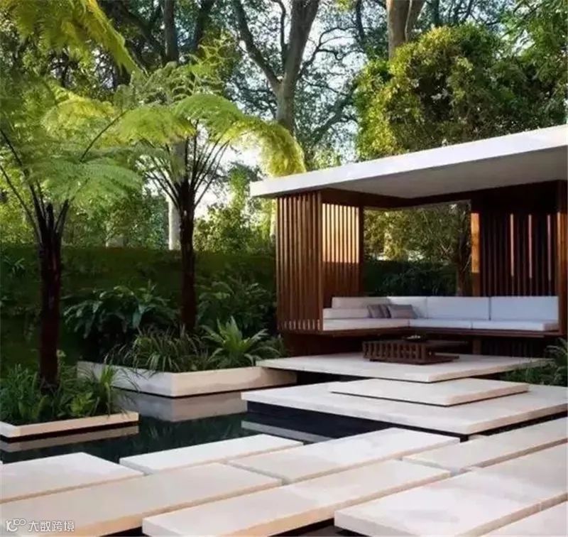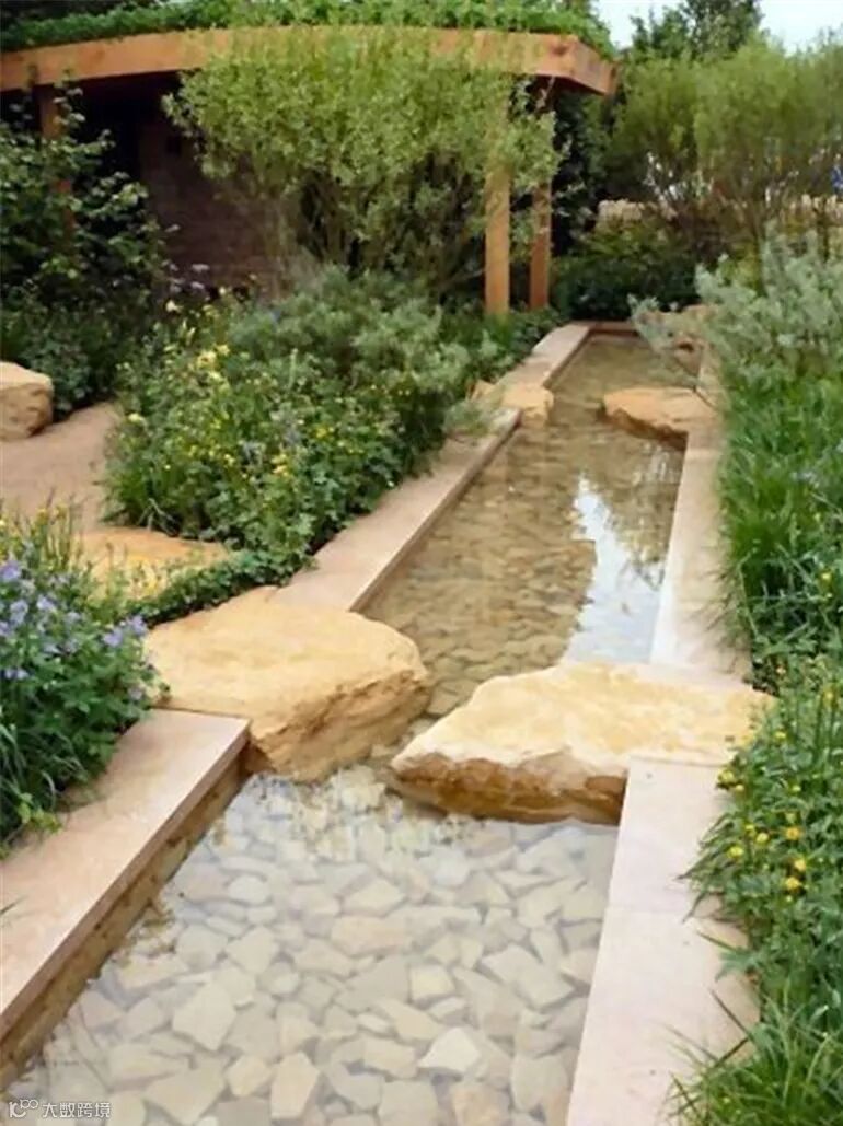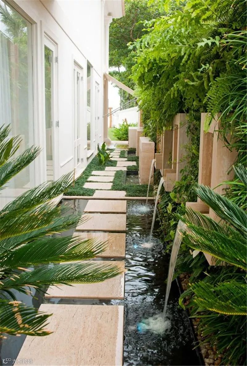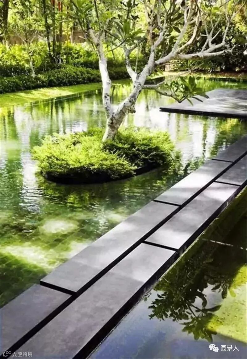 庭院中不管是泳池还是浅水景,一两块汀步涉水其中,家人三两步踏足其上,带着不一样的情趣感受。