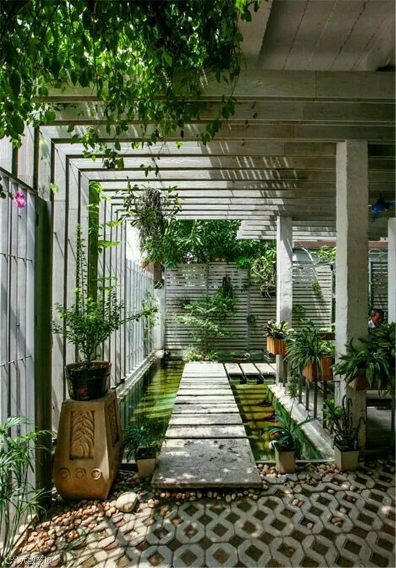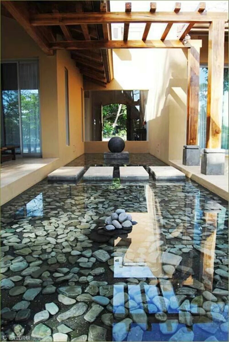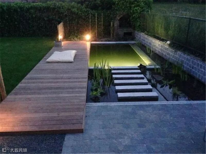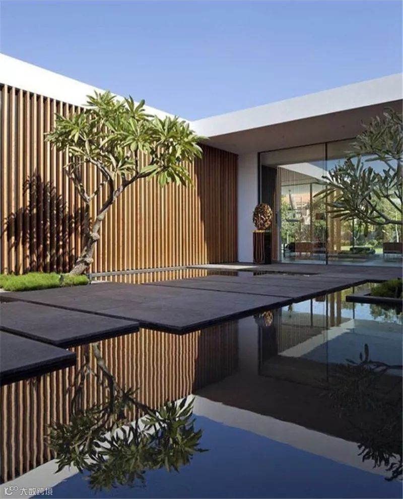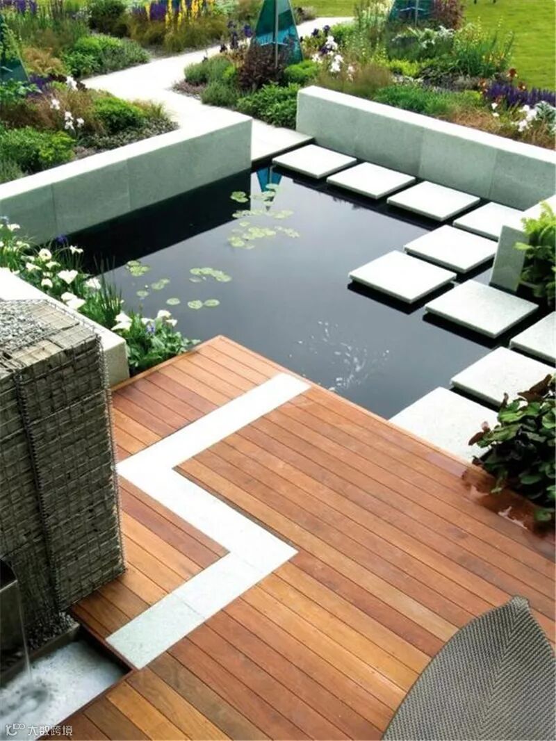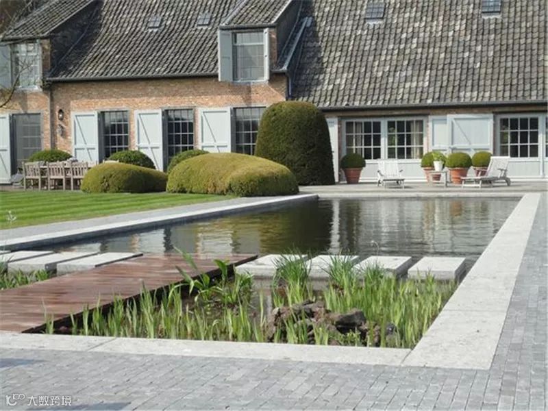 庭院中不管是泳池还是浅水景,一两块汀步涉水其中,家人三两步踏足其上,带着不一样的情趣感受。