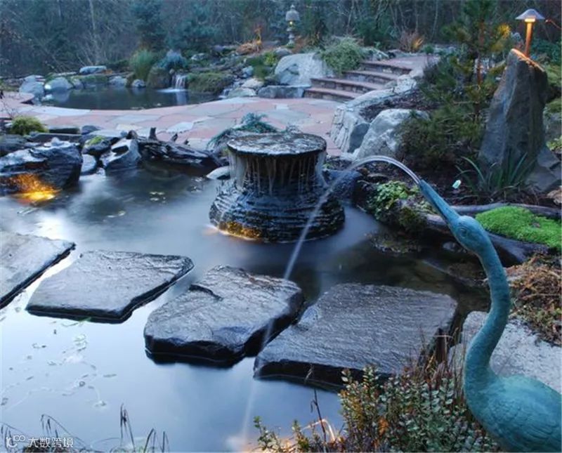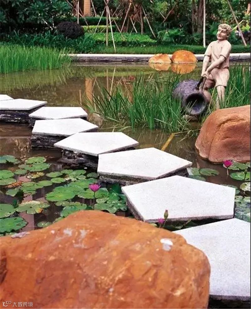 汀步为庭院水景增加了更多的可能,它已经不只是作为水上道路的这一作用,更多的组合形态,使其在装饰上也具有极佳的效果。