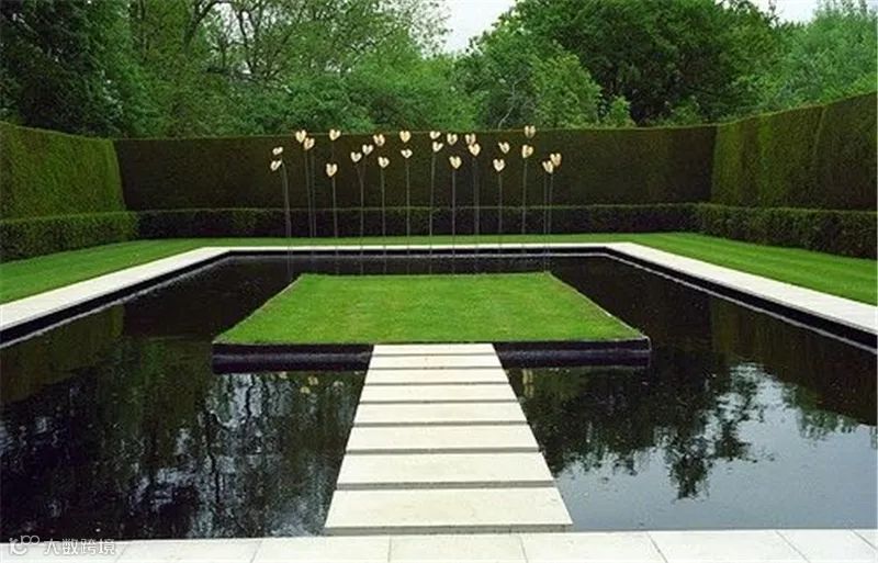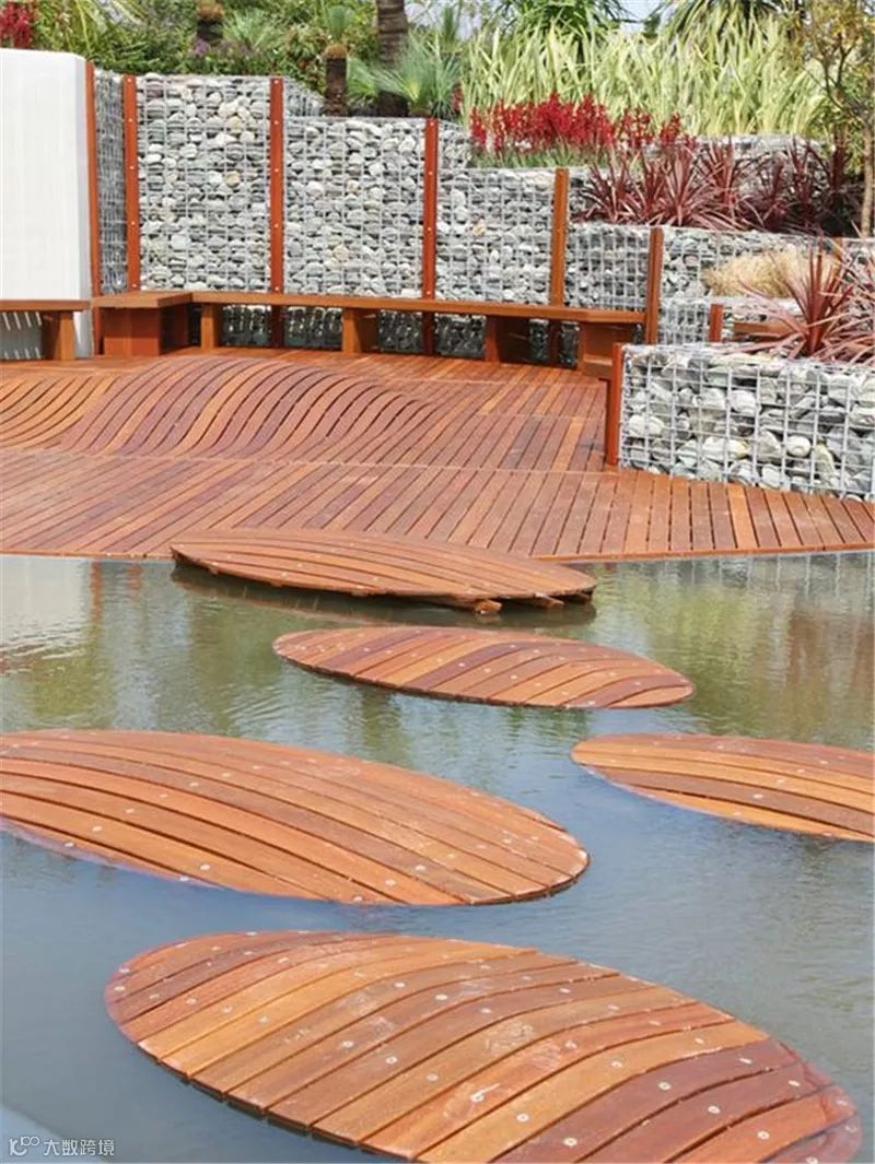 现代汀步的形式不止局限于传统的自然形态,有了更多形式和材质的选择,方形、圆形、椭圆形,石材、木材、金属……