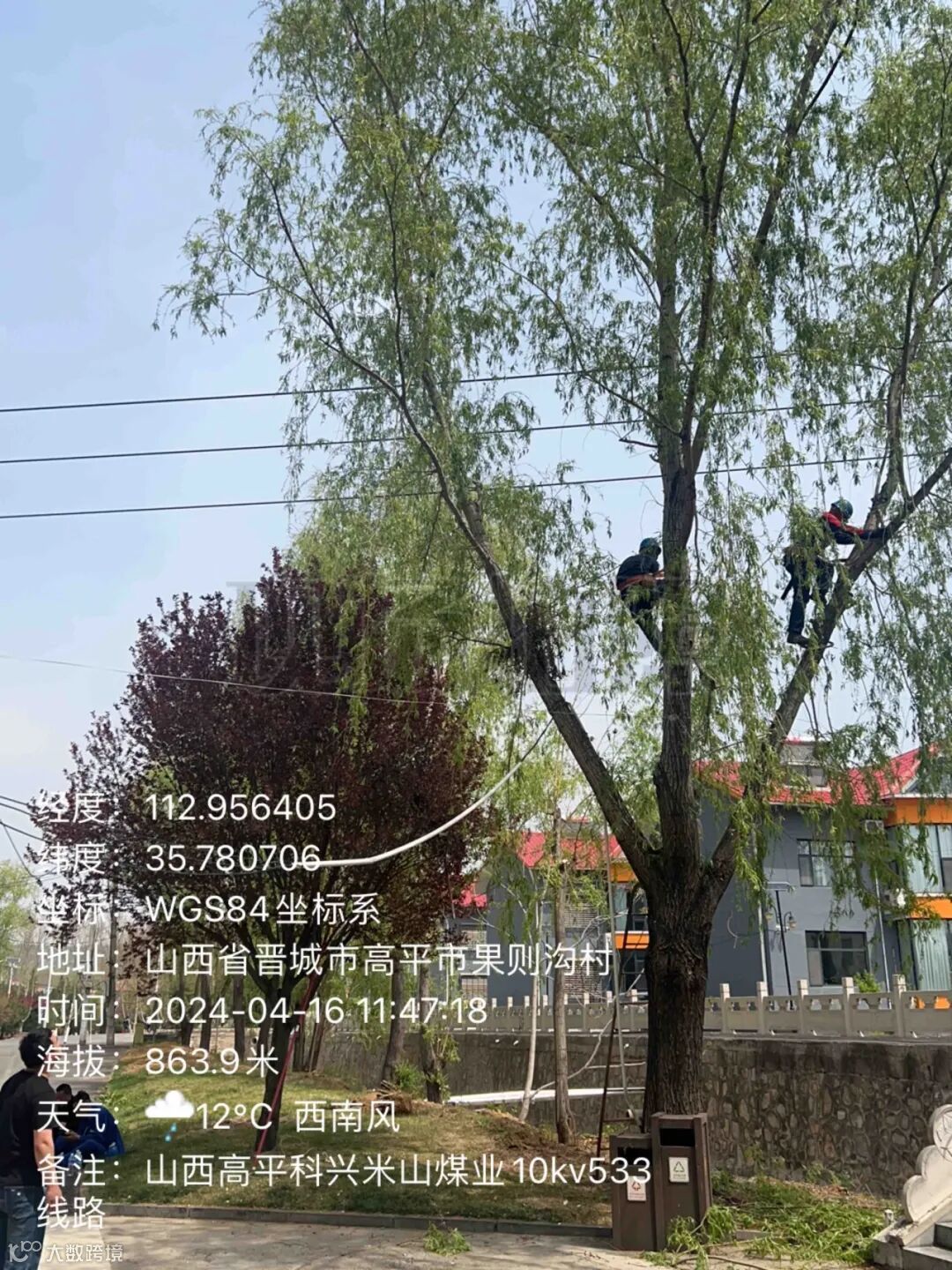 在清障现场,工作人员与供电公司工作人员协调配合,按照停电计划,有组织、有流程地对架空线路周边树木进行修剪,并对剪下的树枝进行了清理善后,做到修剪完一处、干净整洁一处,确保不影响正常交通通行。