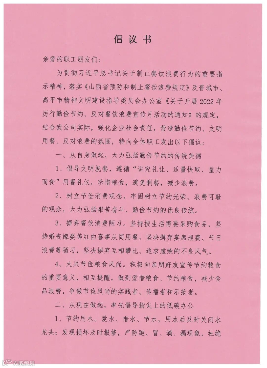 倡议书丨厉行勤俭节约 反对餐饮浪费倡议书