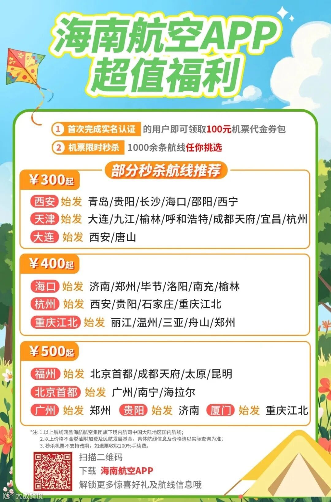 1)超1000条热门航线,单程机票一口价仅300元起;300+航线折上再享高至93折优惠;