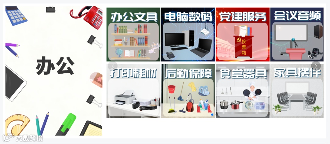 办公板块包含办公文具、电脑数码等 12 + 经典场景,满足日常采购全需求。